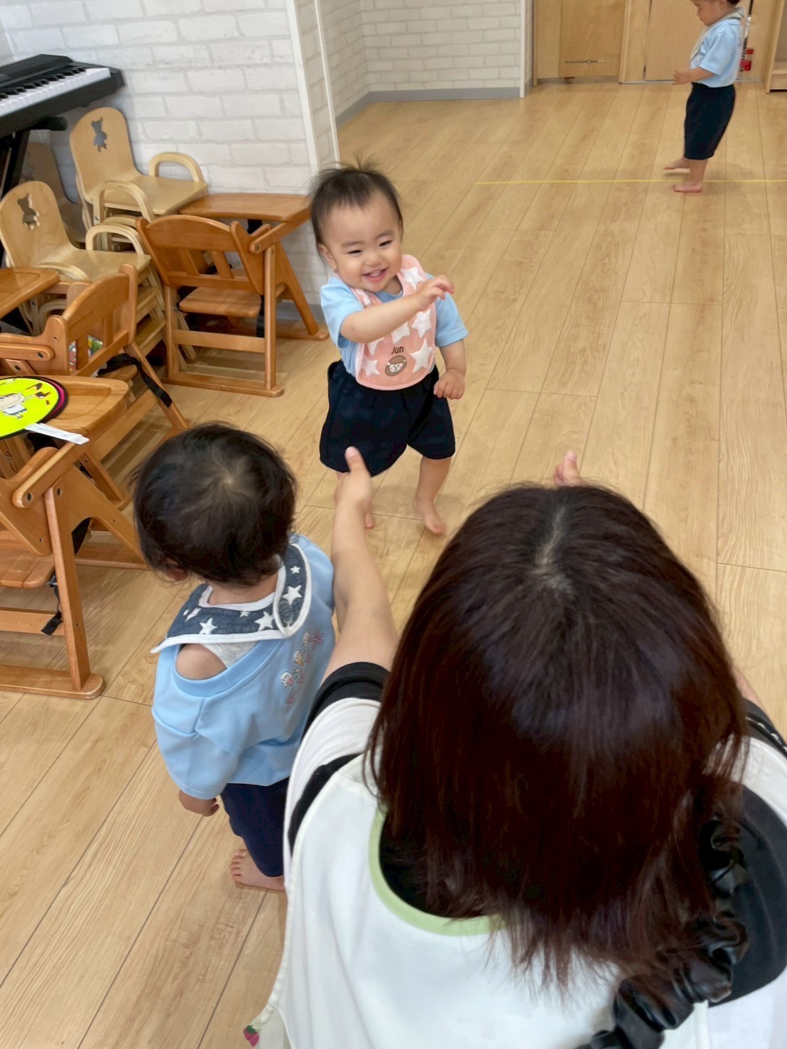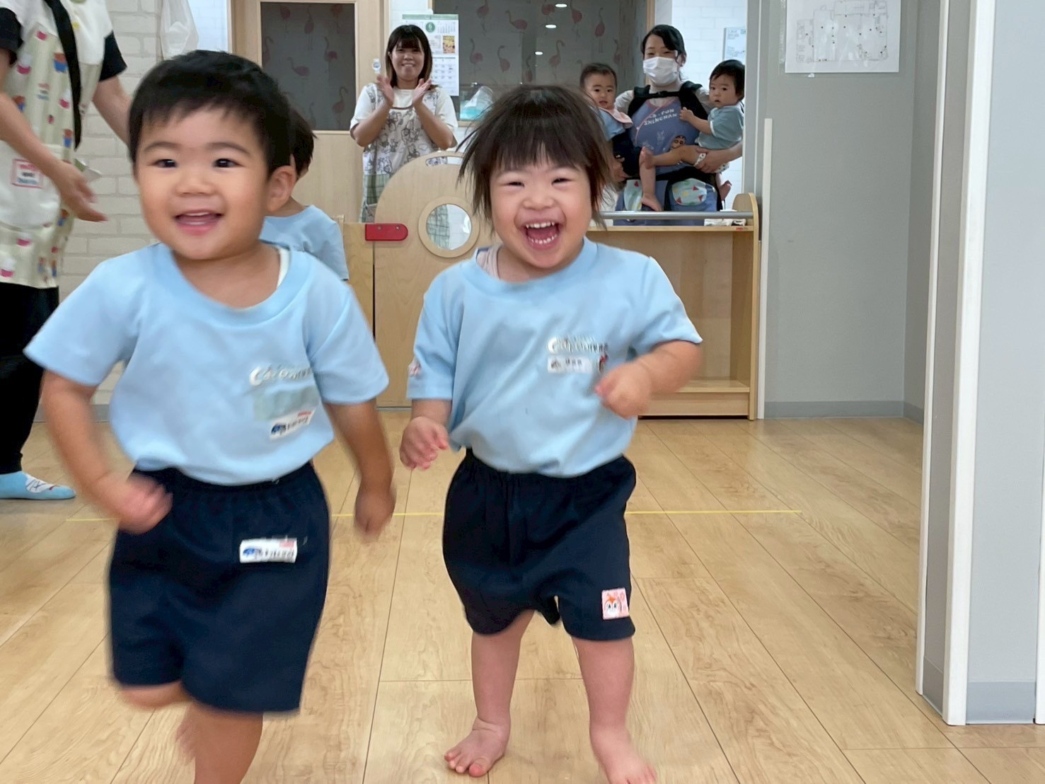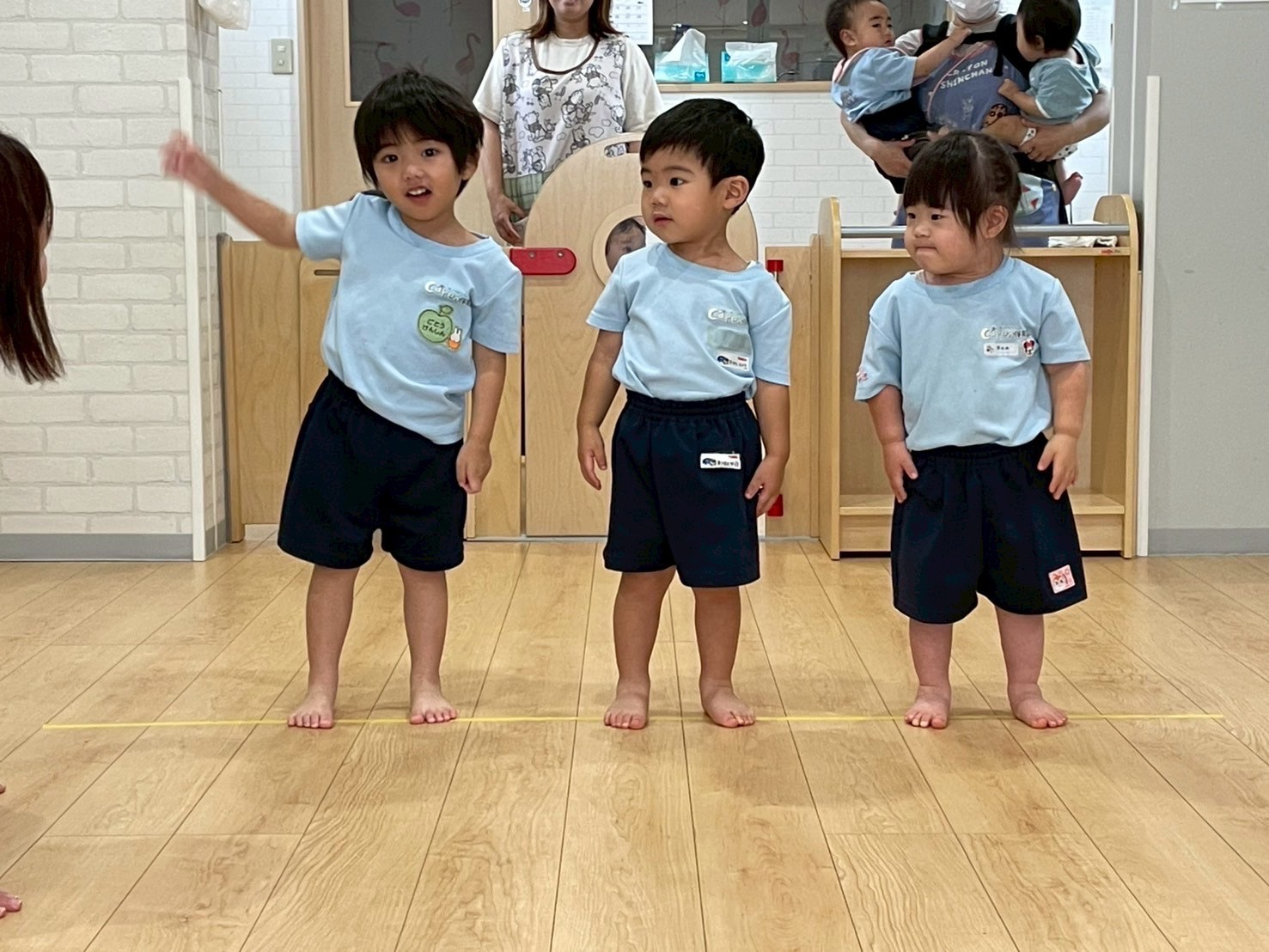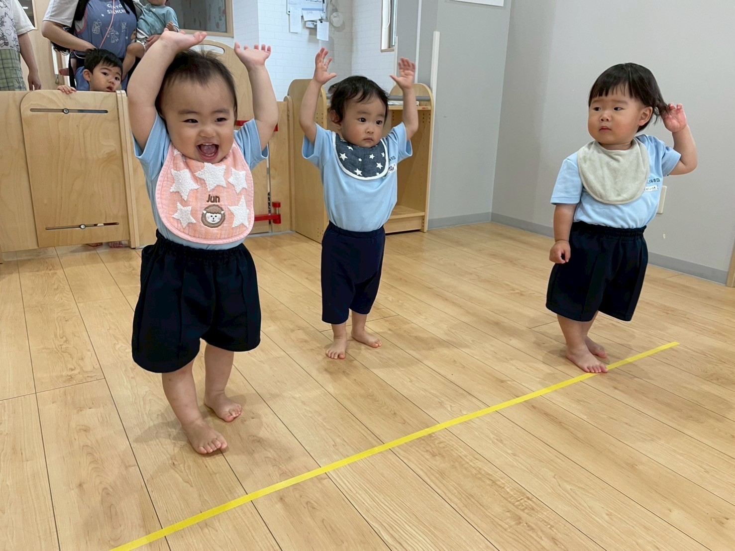 「だるまさんがころんだ」の準備体操もバッチリポーズがキマっていましたよ😎ひよこ組さん🐣のハイハイはそれぞれのペースでゴールを目指して頑張りました🐥