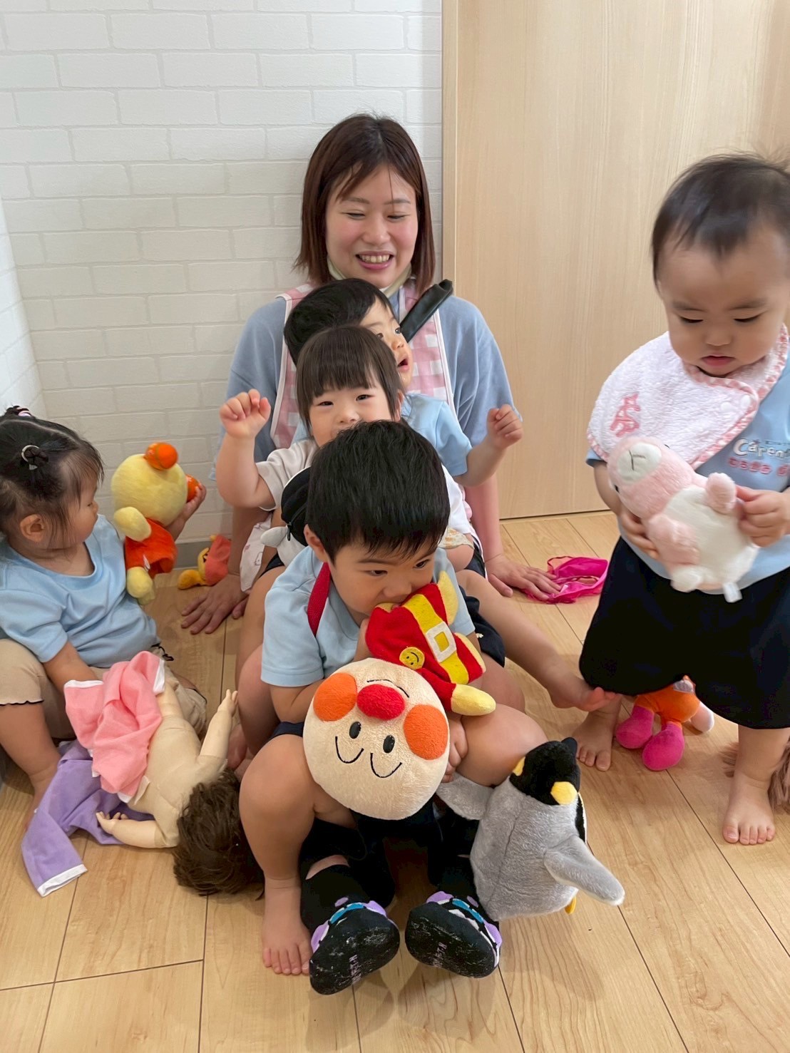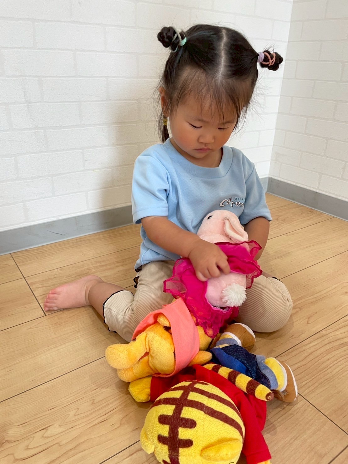 明日は初めての場所でいつもとは違う雰囲気にドキドキなお友だちもいるかと思いますが、おうちの方の応援でパワーをもらいながらみんなで楽しく参加できたらなぁと思います🏅練習後は、室内でぬいぐるみでごっこ遊びを楽しみました🧸