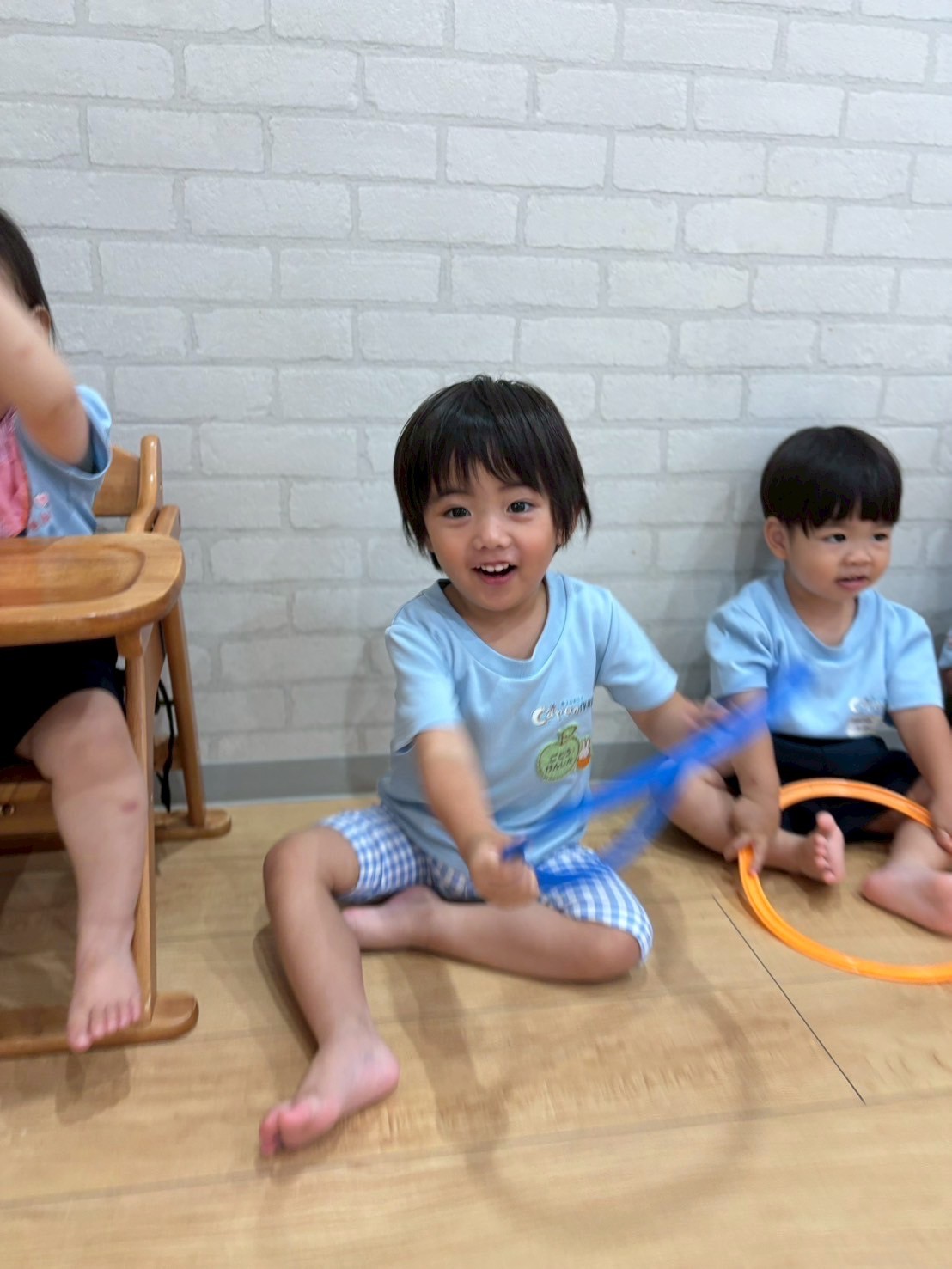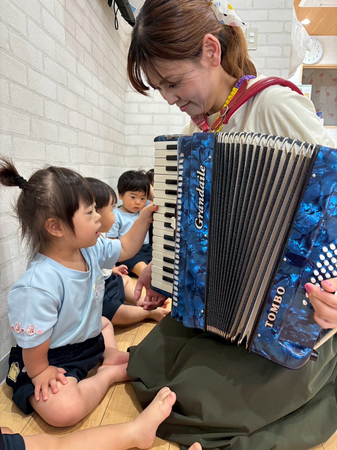 アコーディオンにも触れましたよ🪗恐る恐る触るお友だち、怖くて泣いてしまうお友だち、音が出るのが楽しいお友だちと反応がさまざまでした☺️