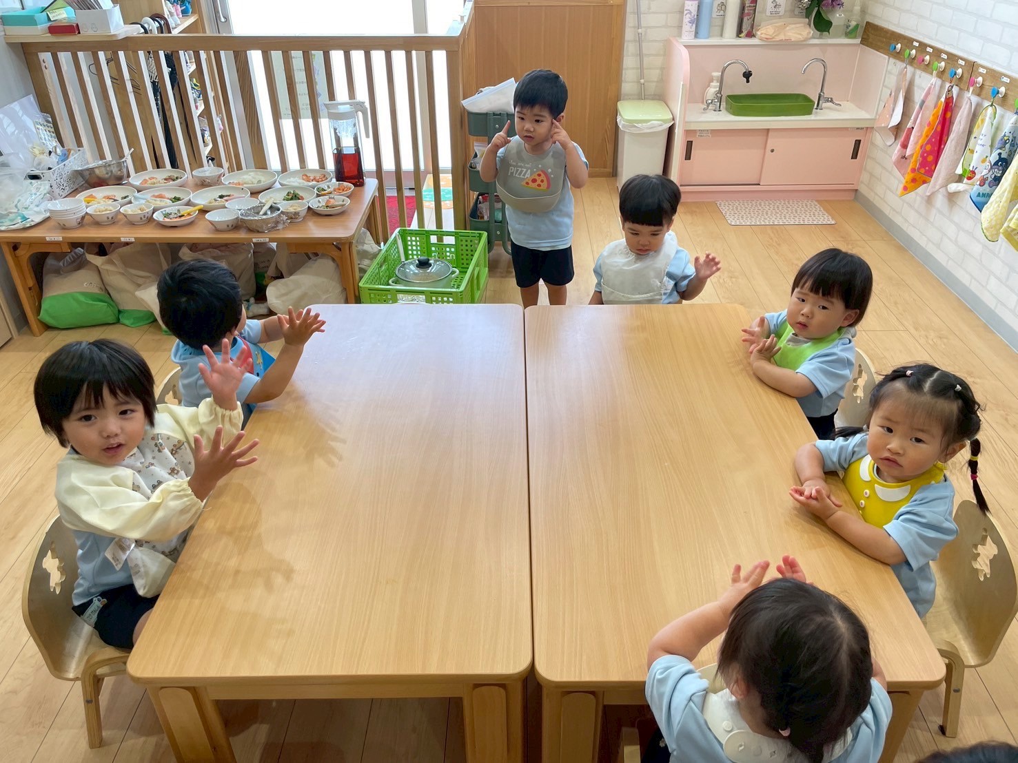 保育者がお手本を見せるとみんな興味津々🤩