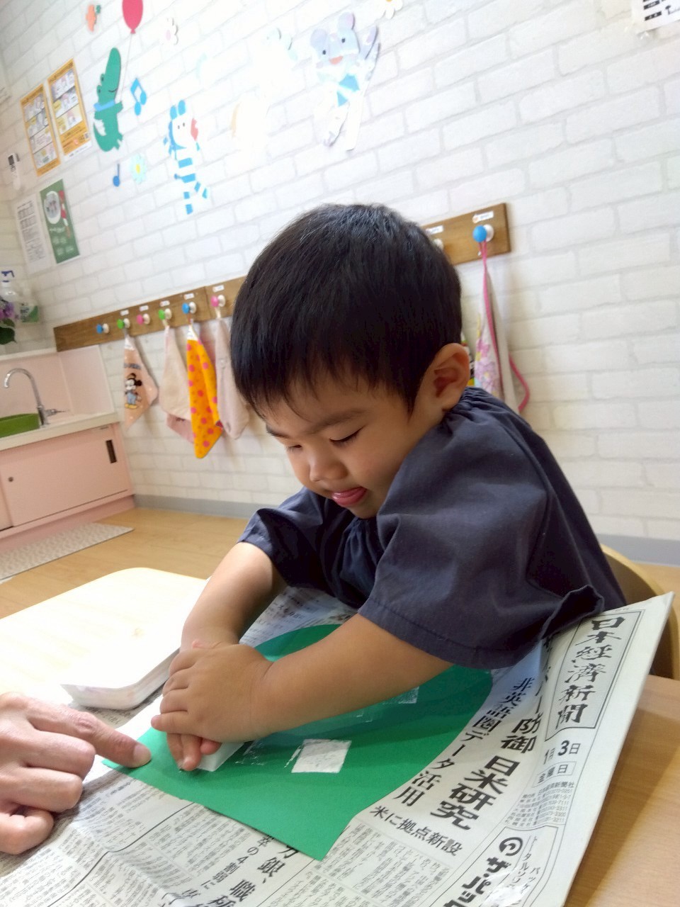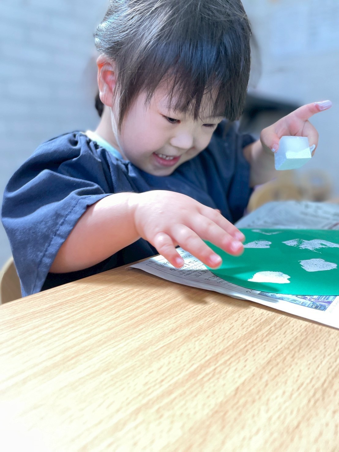 スポンジを手に取ると、ポンポン軽快に押したり、ぎゅーっと力を込めてみたりと画用紙に写る形とスポンジを交互に見ながらみんなとっても楽しそうでした😍