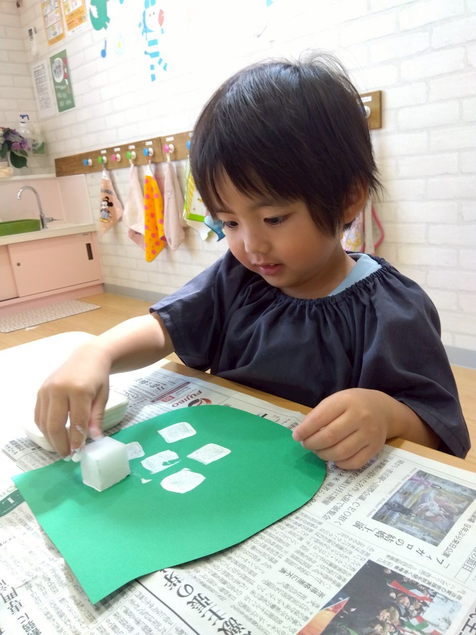 月製作でメラミンスポンジを使ったスタンプ遊びをしましたよ🧽✨
