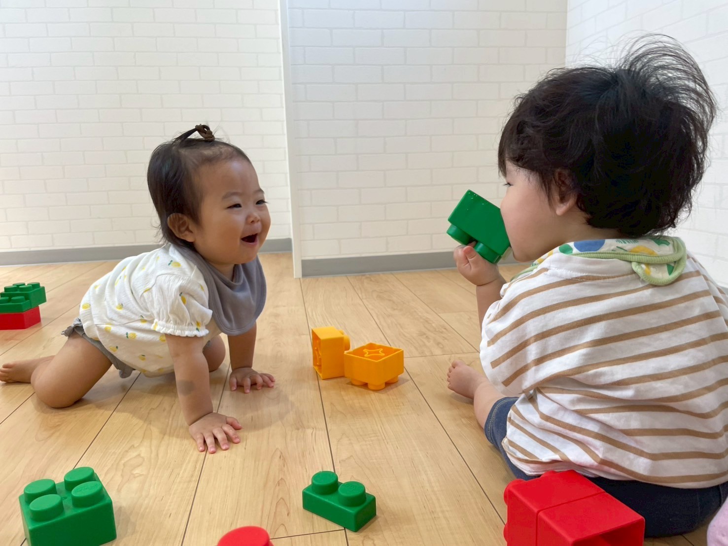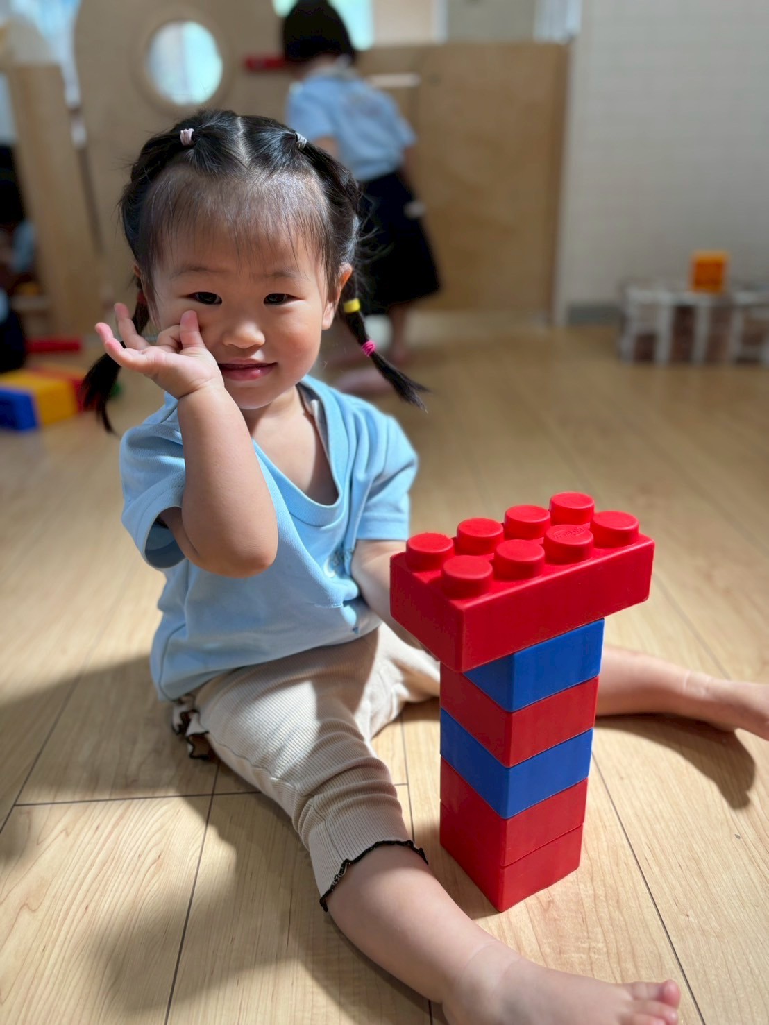 順番を待つ間は大型ブロックで遊びましたよ❤️💙