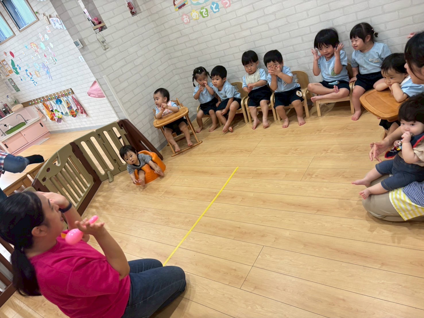 フルーツ🍌のダンスや野菜🥒の英語を教えてもらったり、色合わせカードをしたり、楽しい遊びが盛り沢山💓バイバイソングも元気に踊りましたよ🎵😆