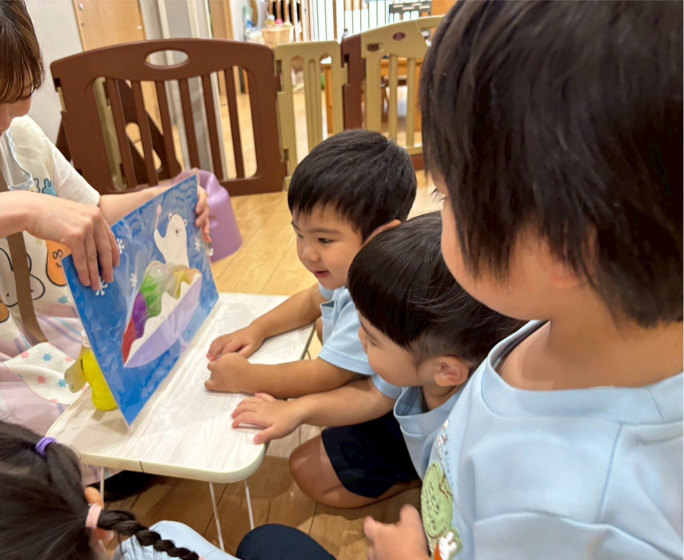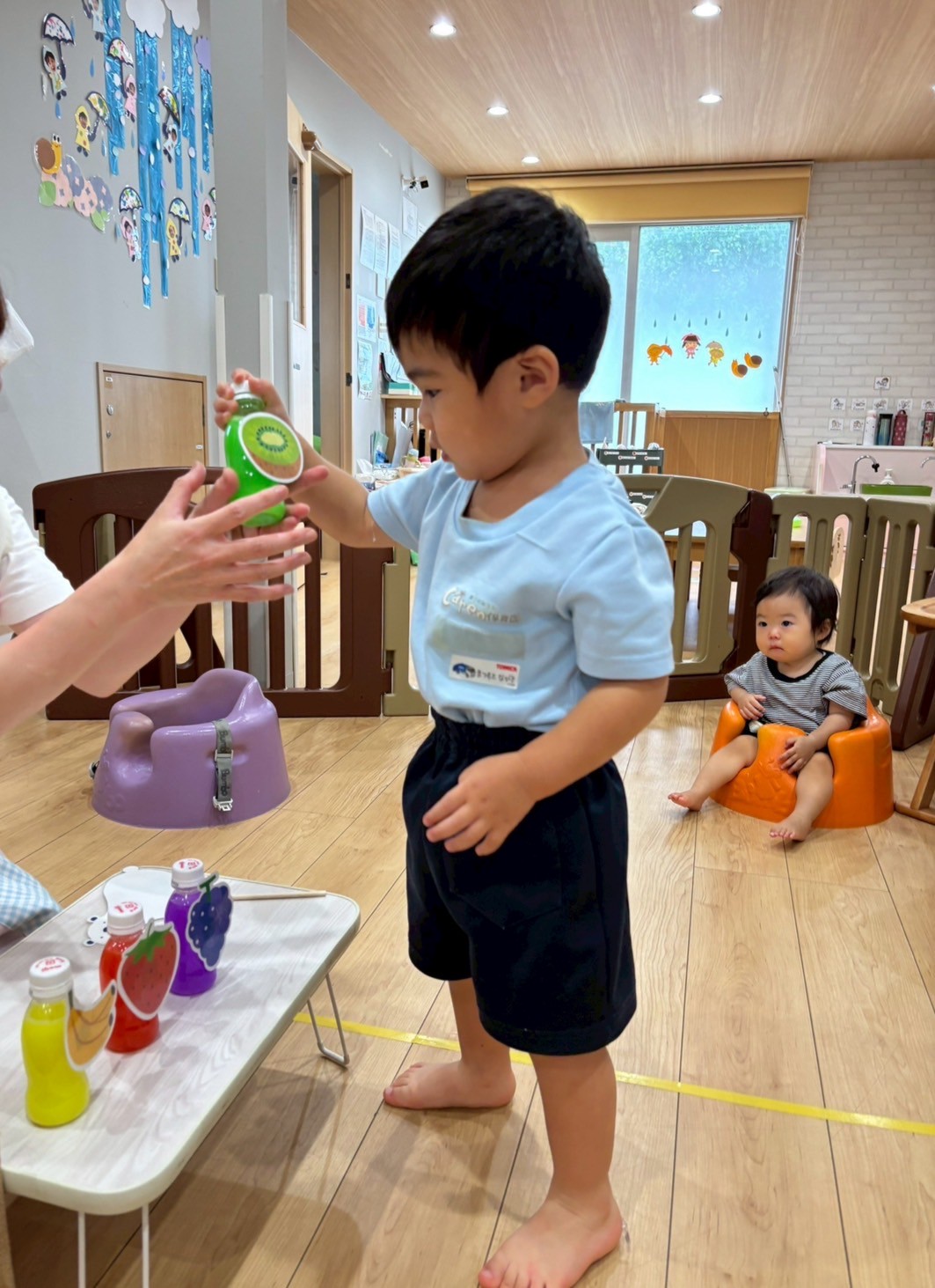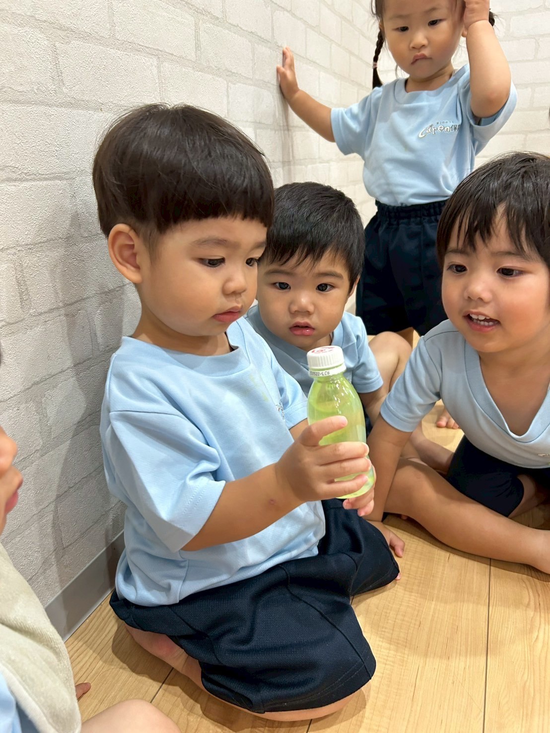 先生からの出し物は色水マジック🍓シロクマ🐻❄️さんにみんなでチチンプイプイの魔法をかけて、美味しいフルーツのジュースが出来上がりました🍓🍇最後は大きなかき氷🍧のシロップにしていただきま〜す😋