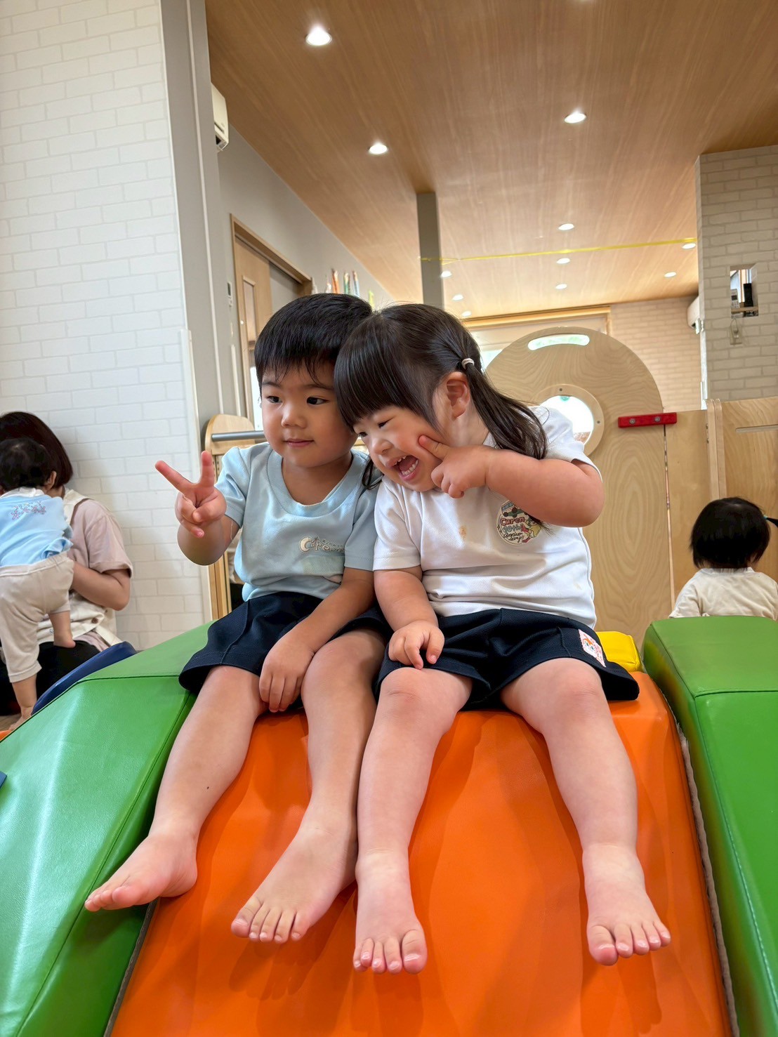 🐥組さんは、伝い歩きやいないいないばあ😆👐🏻を楽しんでいましたよ🛝