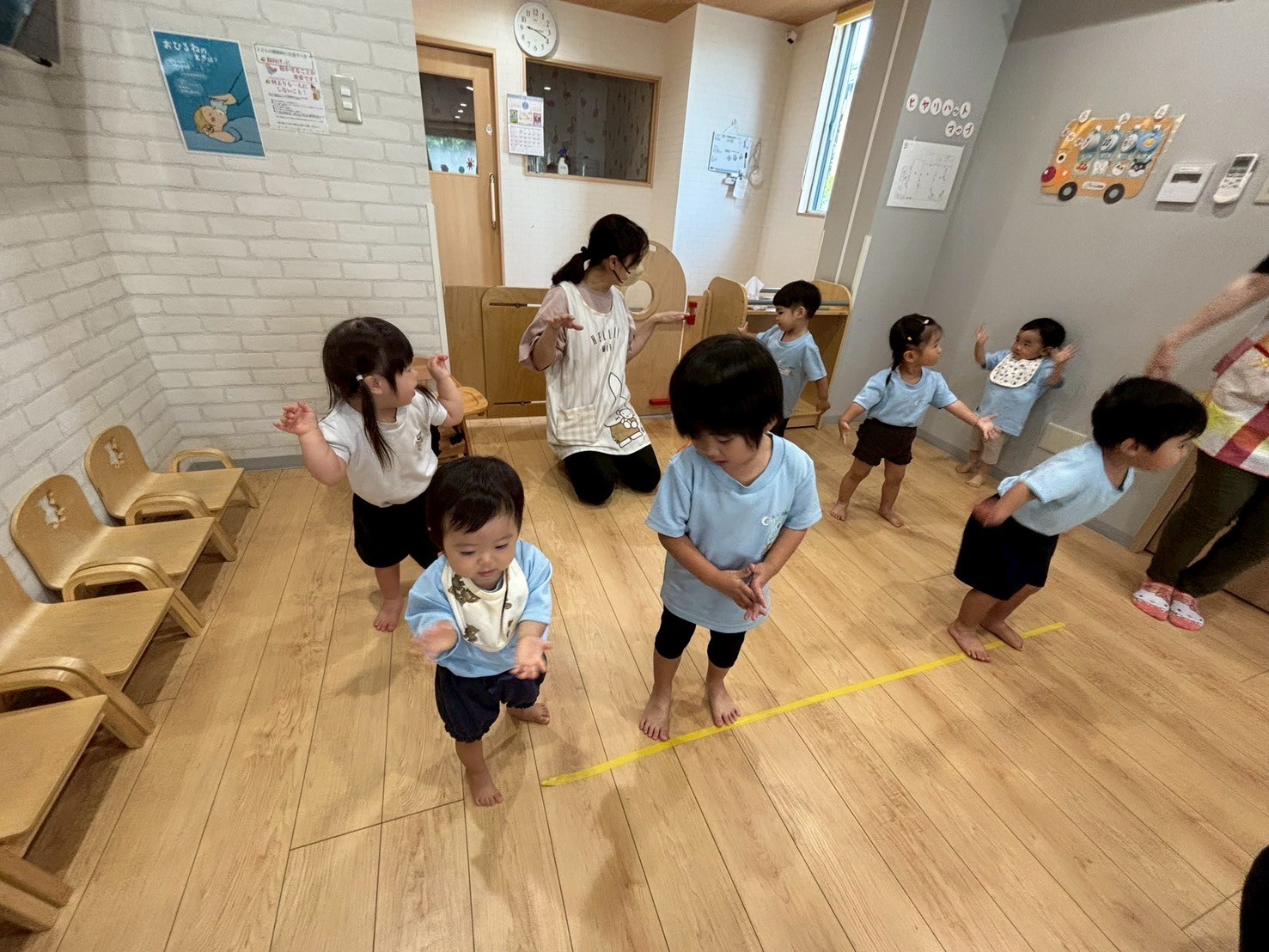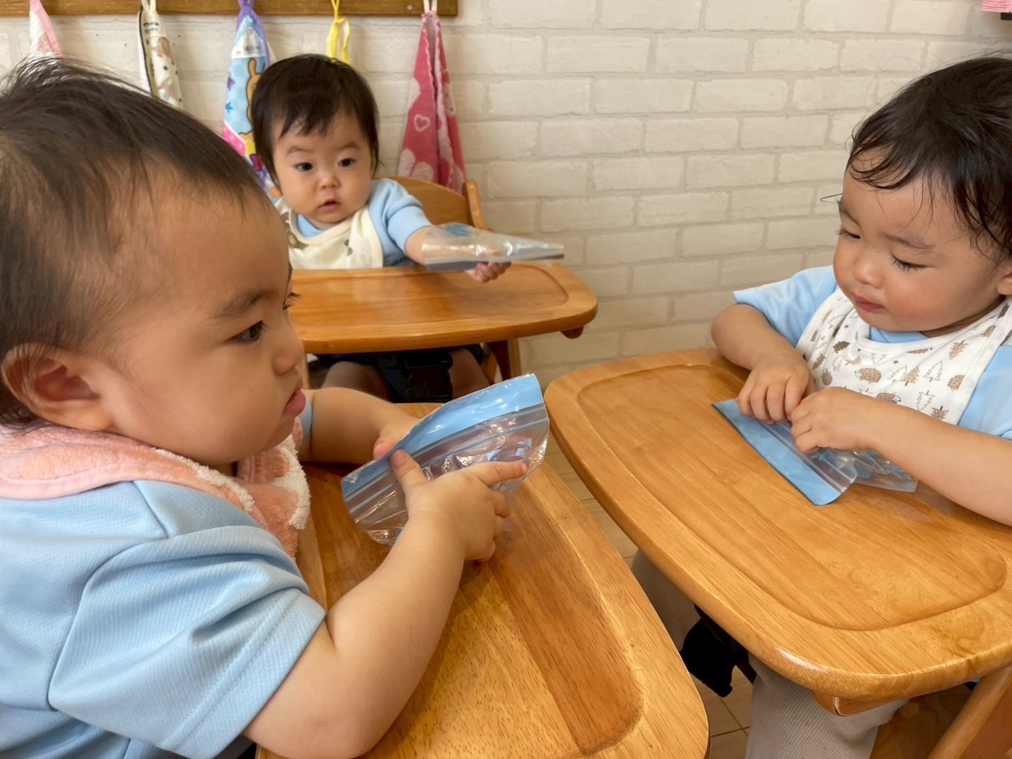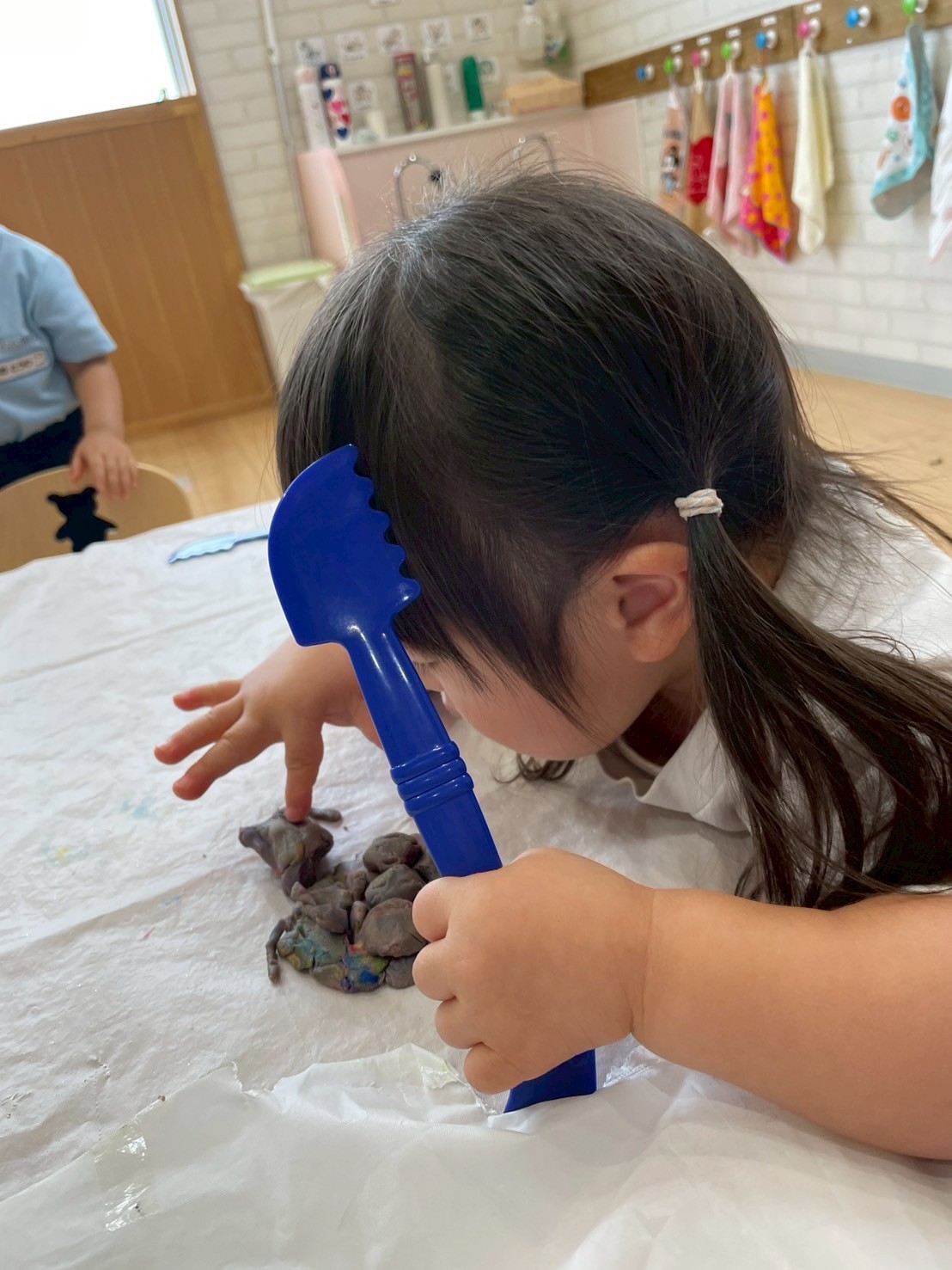 活動では、小麦粉粘土で遊びました🌾初めは、不思議そうに見ているだけだったお友だちや、ひんやりする粘土に興味津々でコネコネ触って楽しむお友だちもいました🤗