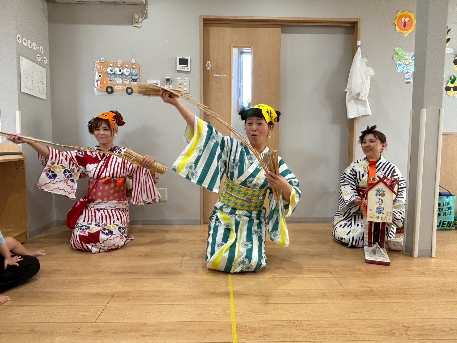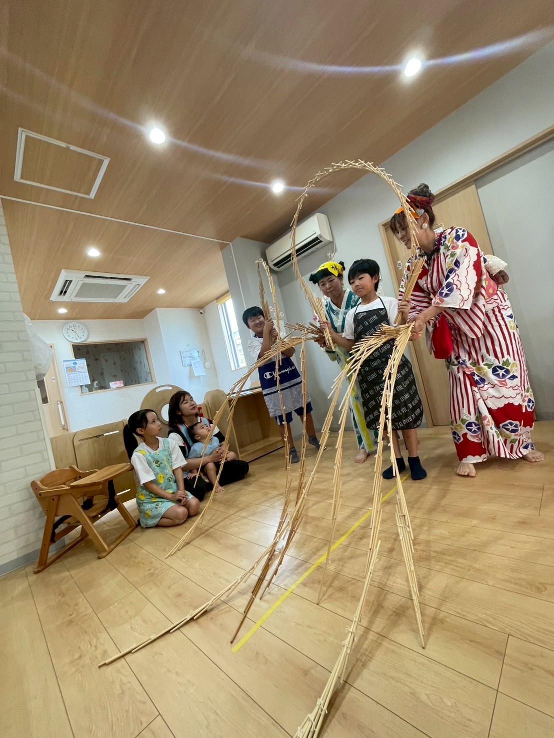 南京玉すだれでは、保育士体験のお兄さん達が大きな🐙や🐟を釣り上げ大盛り上がり👏🎶