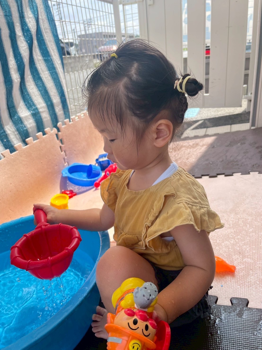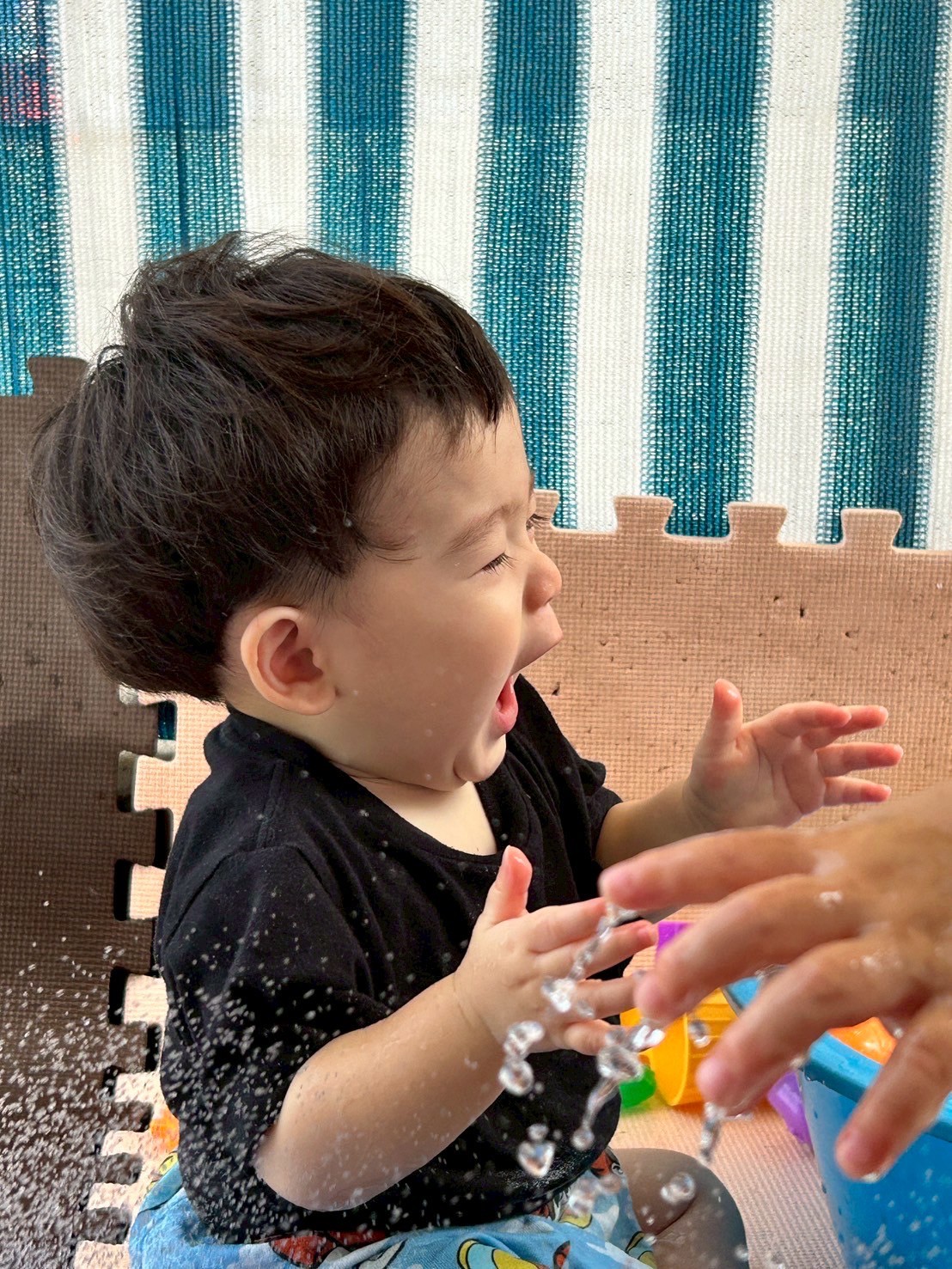 お水がお顔にかかると、「きゃー😆」っと声を出して楽しそうな声が響き渡っていました🎶