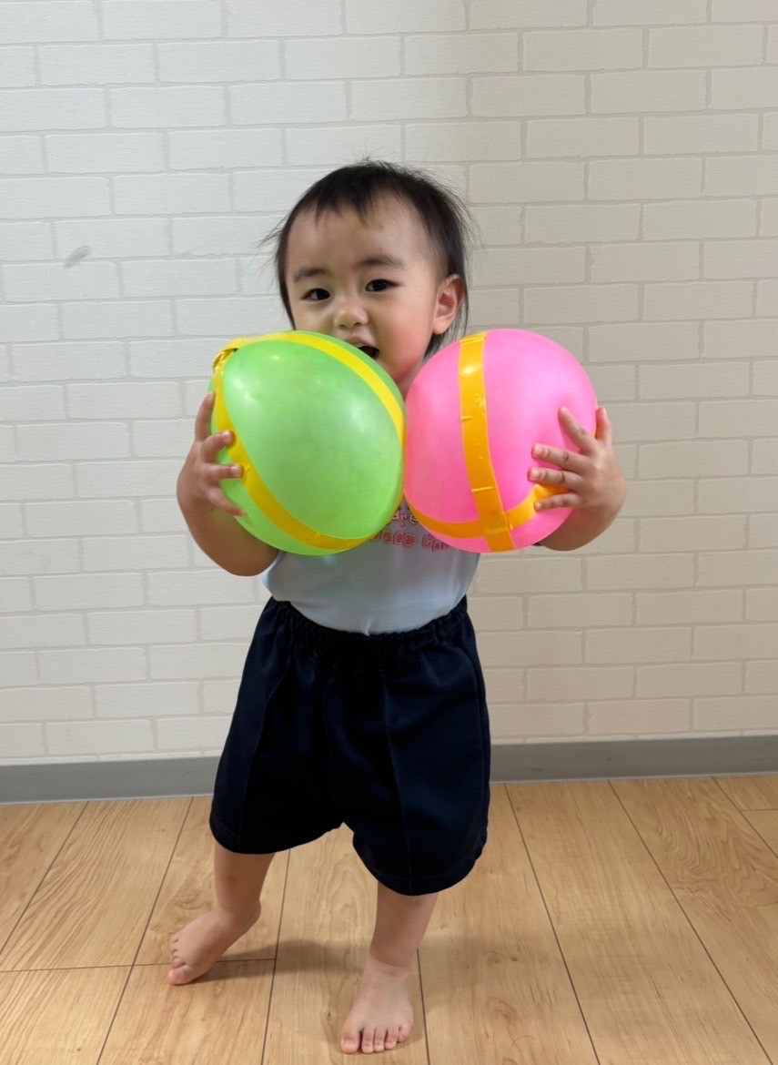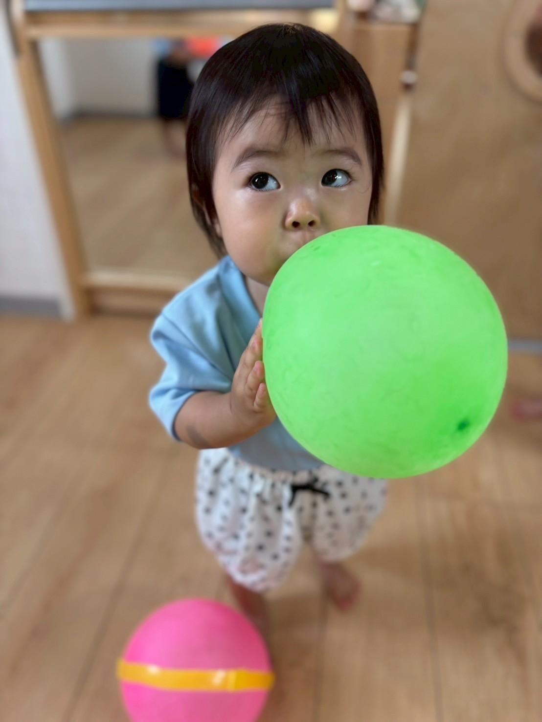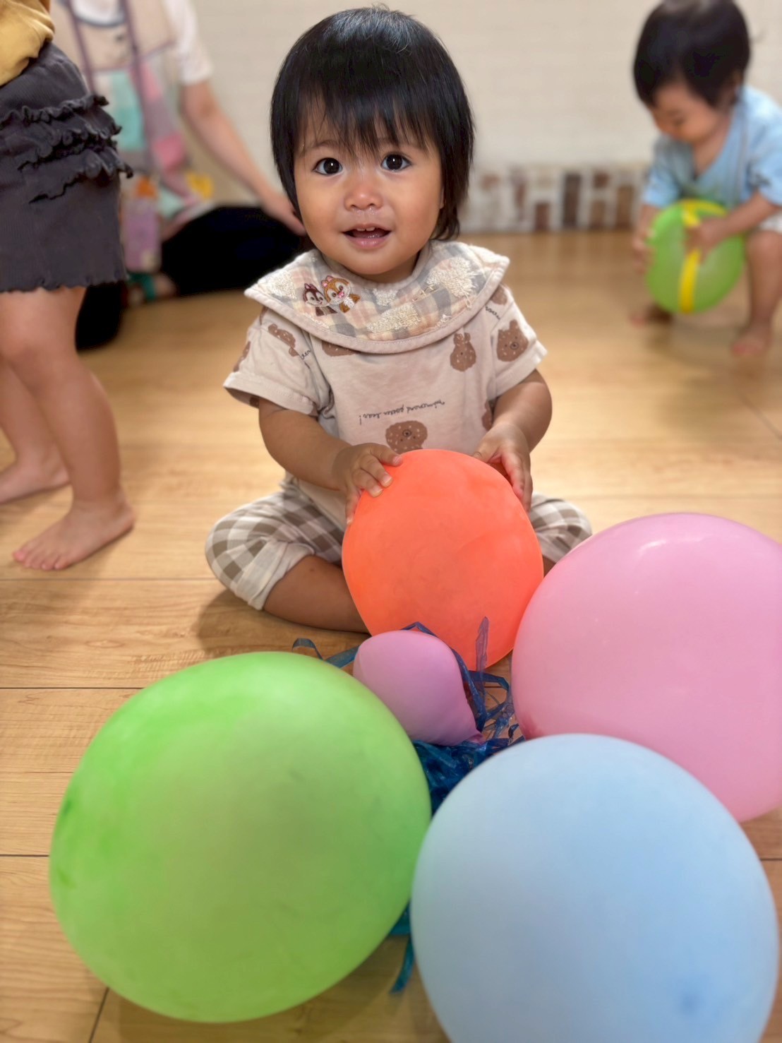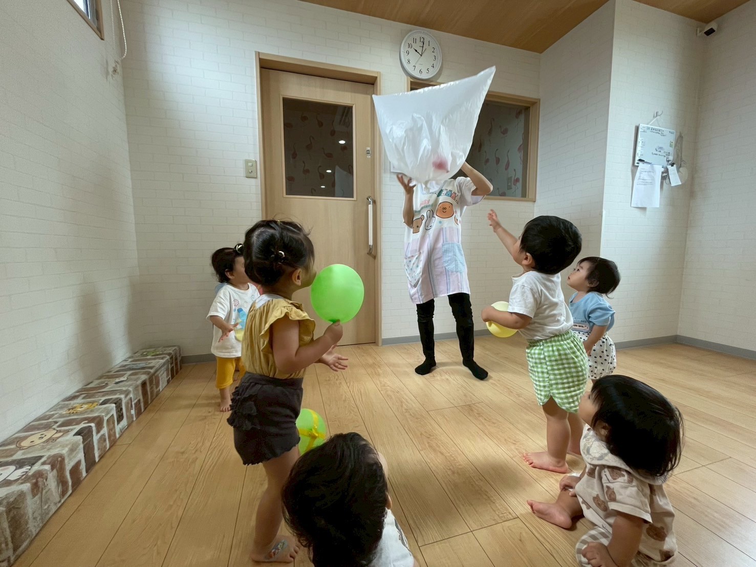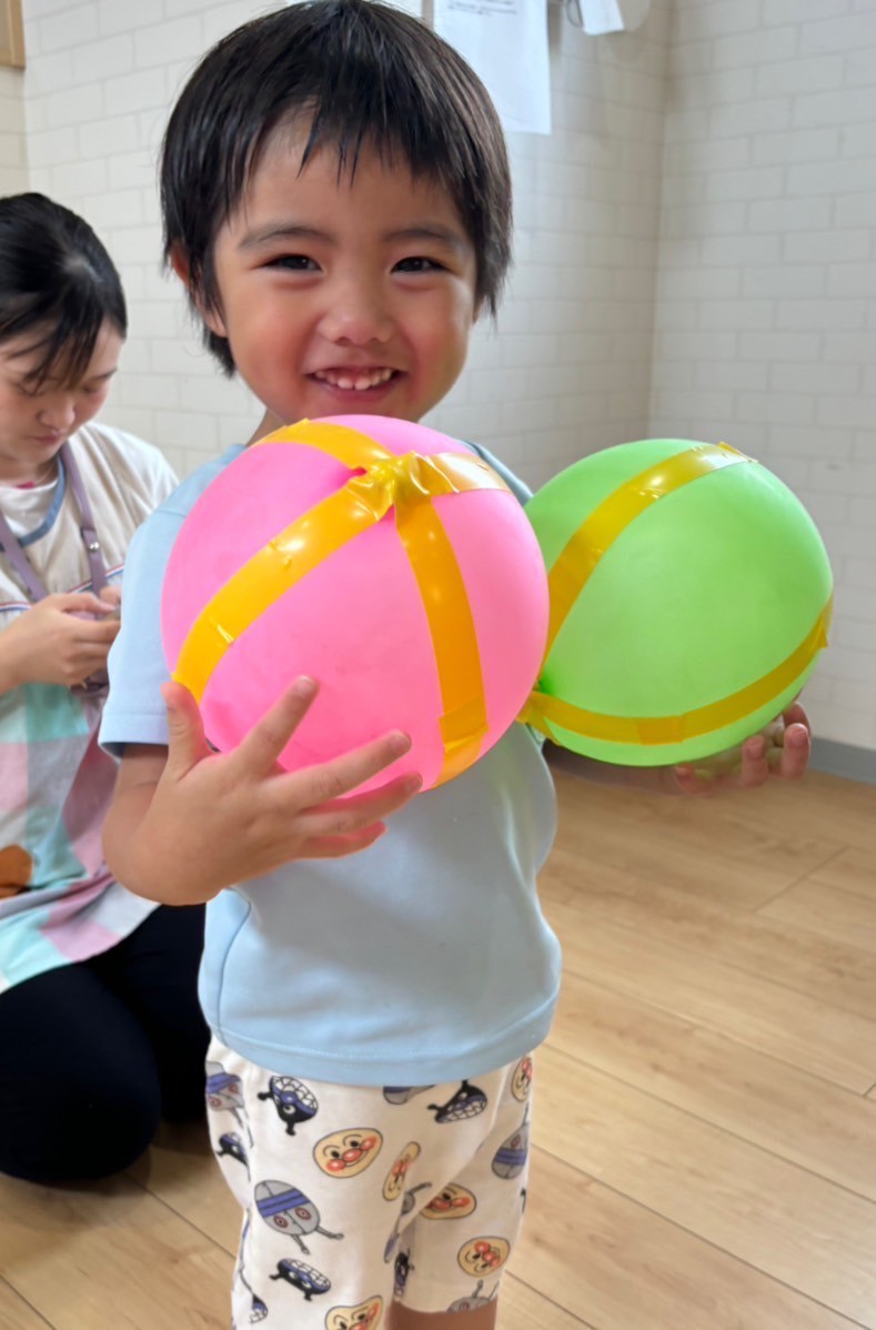 風船遊びでは、ゴミ袋で作った大きな風船が大人気🙌✨