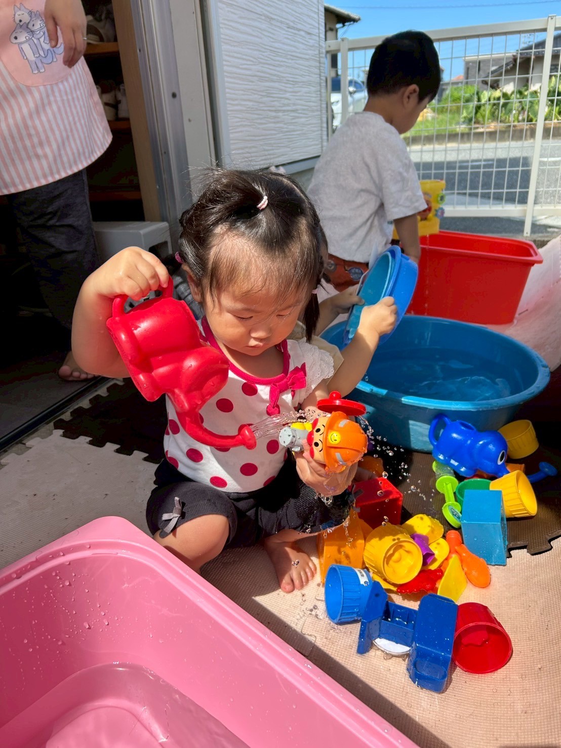 3箇所で水を溜めておもちゃを出すと、みんなそれぞれの場所で夢中になって遊んでいましたよ🐳🚿