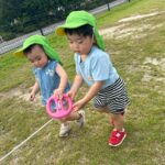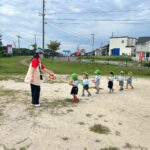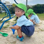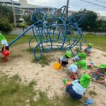 公園ではまず誘導ロープの練習をしましたよ✨久しぶりだったり、初めてのお友だちもいましたが、みんな誘導ロープに興味津々❣️好きな色のハンドルを持って「しゅっしゅっぽっぽ🚃」の掛け声のもと公園内を歩きました🙌初めは戸惑っていた子もスムーズに歩くことができて、とっても上手でした🥰その後はゆっくりお砂遊びを楽しみました💕