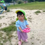 早速トンボに出会えて嬉しそうなお友だち❤️空飛ぶトンボと一緒にニコニコで公園に向かいました😆