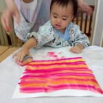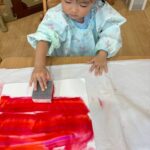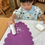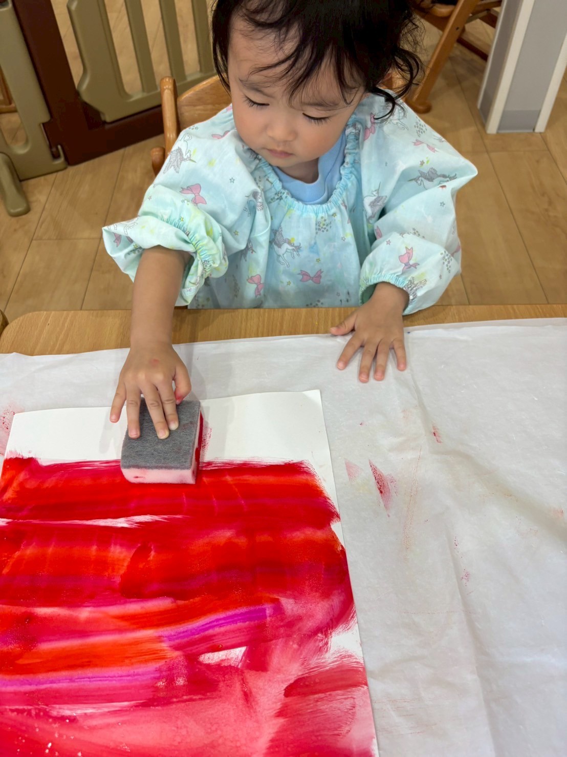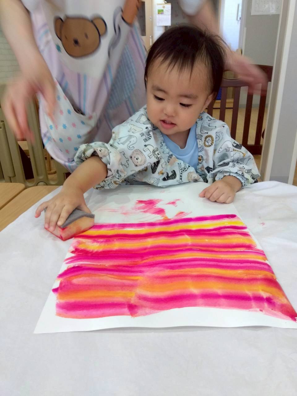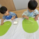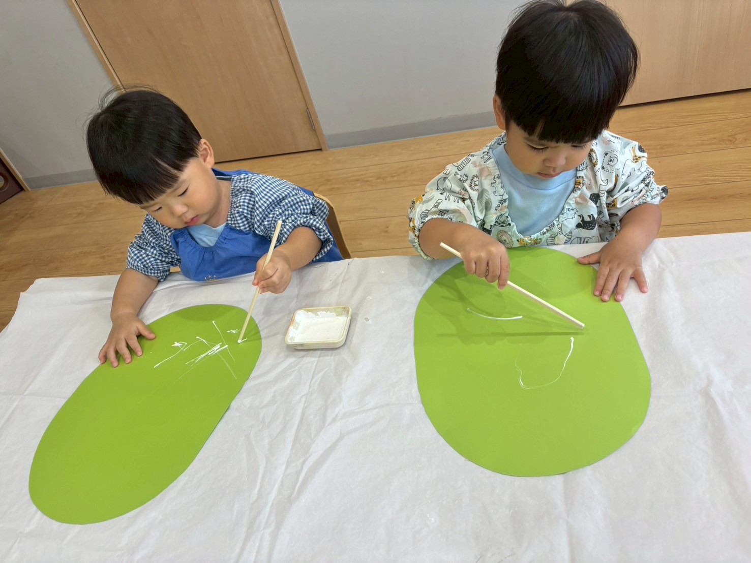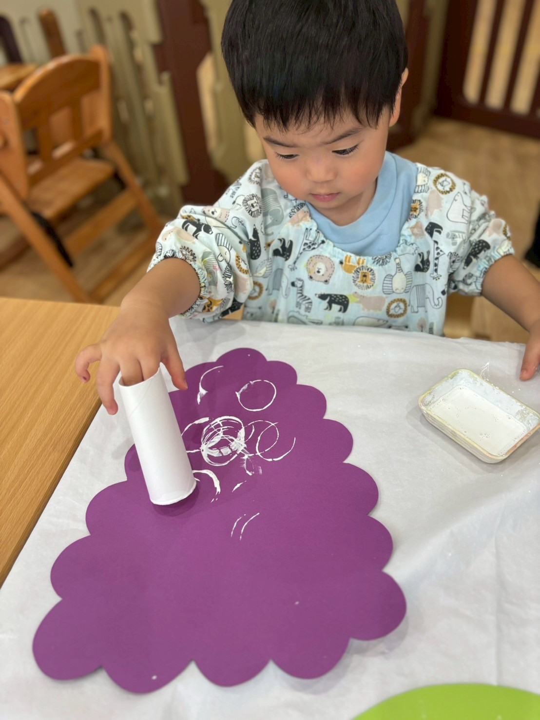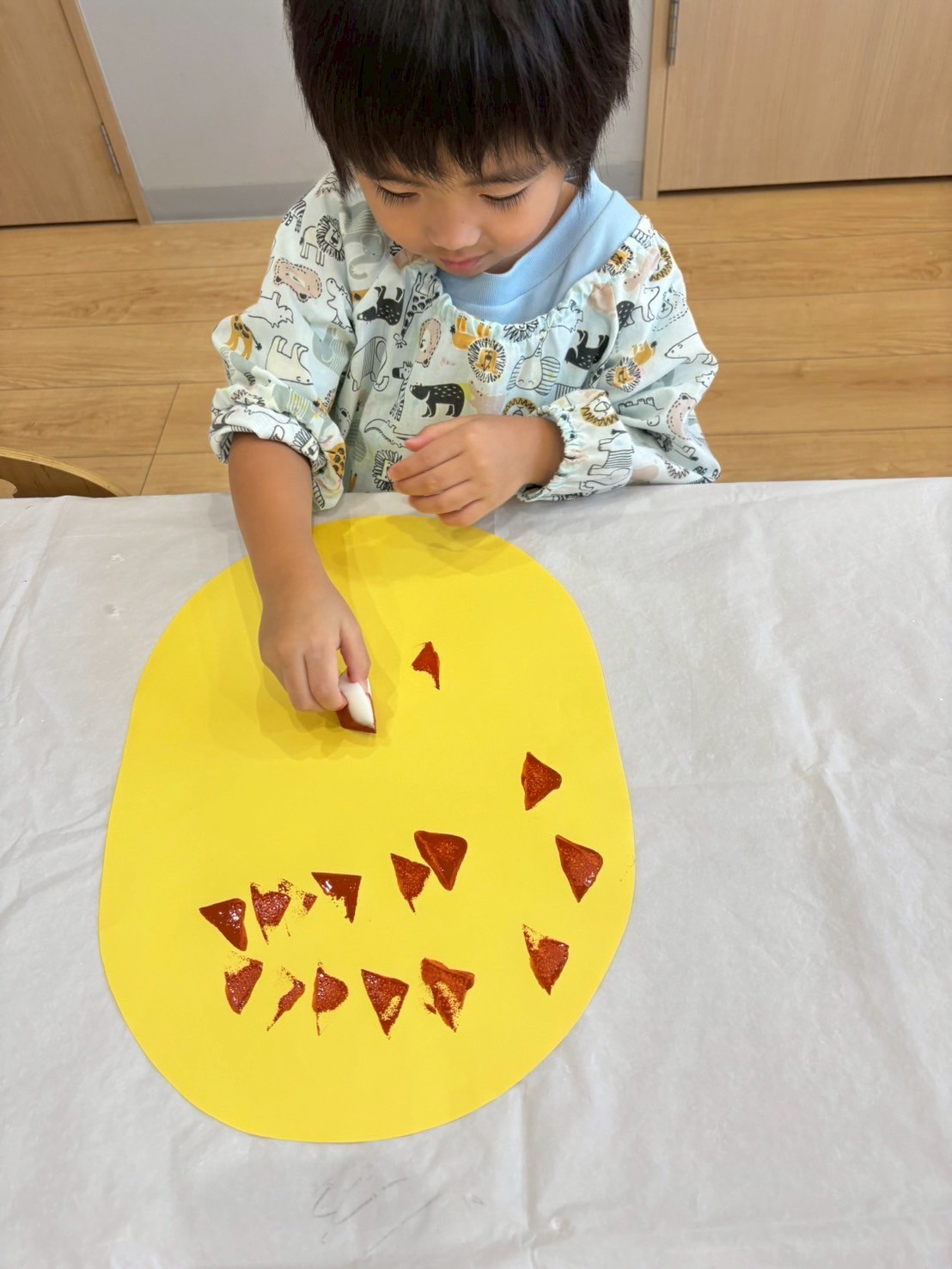 割り箸やトイレットペーパーの芯🧻などを使ってスタンプしたり、スポンジで色塗りをして楽しみました🧽🍍