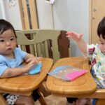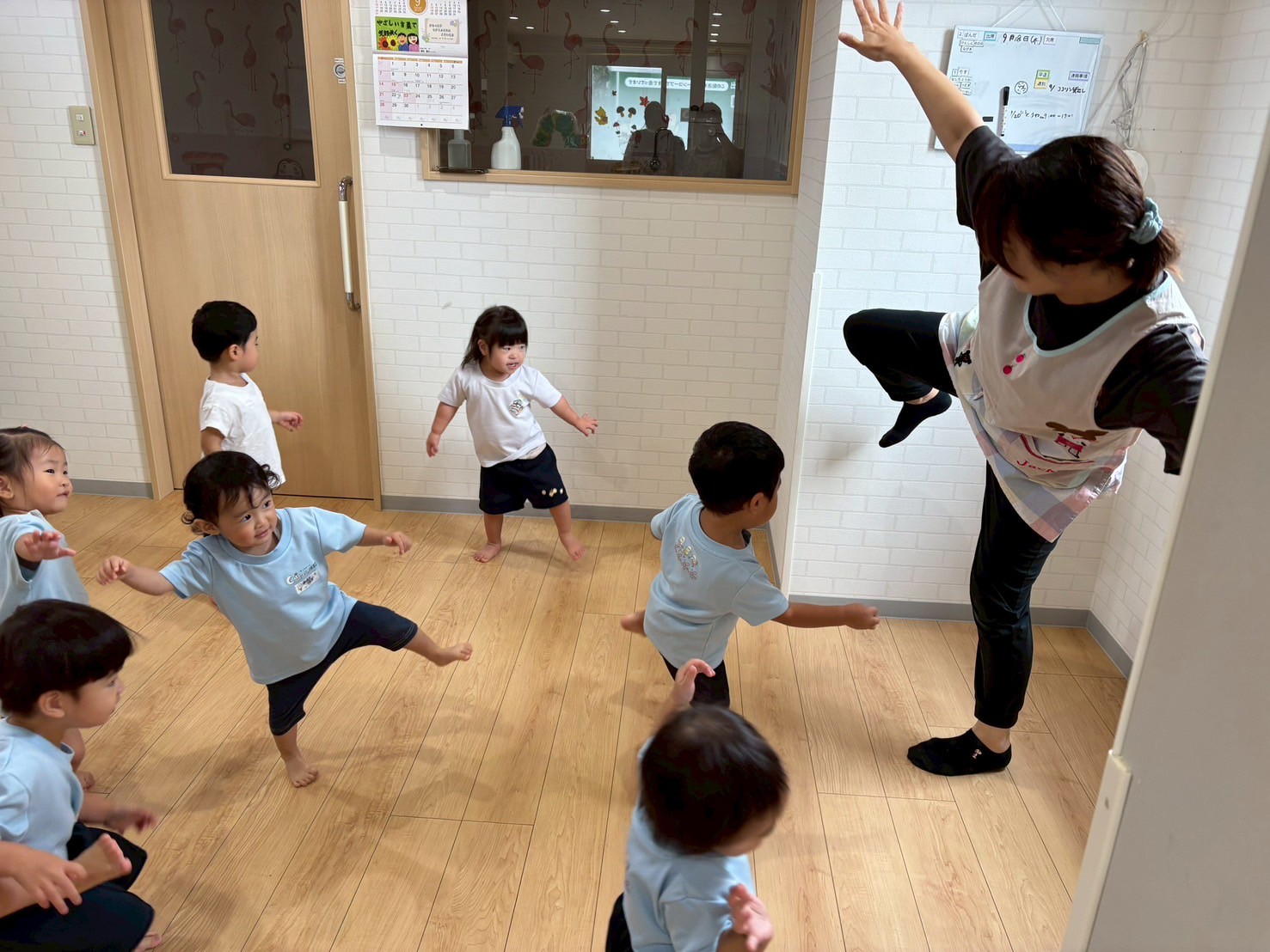 たっぷり指先を使って遊んだ後は、ひよこ🐣さんは音の鳴る積み木、りす🐿パンダ🐼さんはお部屋で運動遊びをしました💪✨