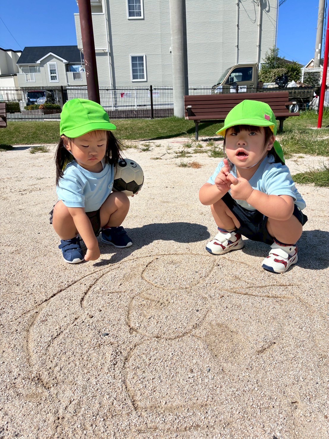 朝の会でお話をしていたので、消防士さんの登場に興味津々の子ども達👀✨