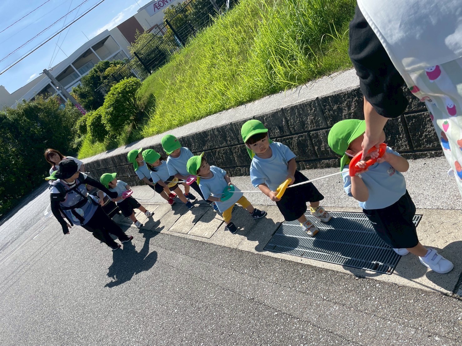その後は、🐼🐿さんは誘導ロープを使ってむつき公園までお散歩へいきました!まだ練習中で集中が続かない子もいますが、格好良く一列になって歩くことができました😊👍