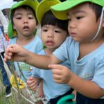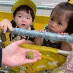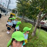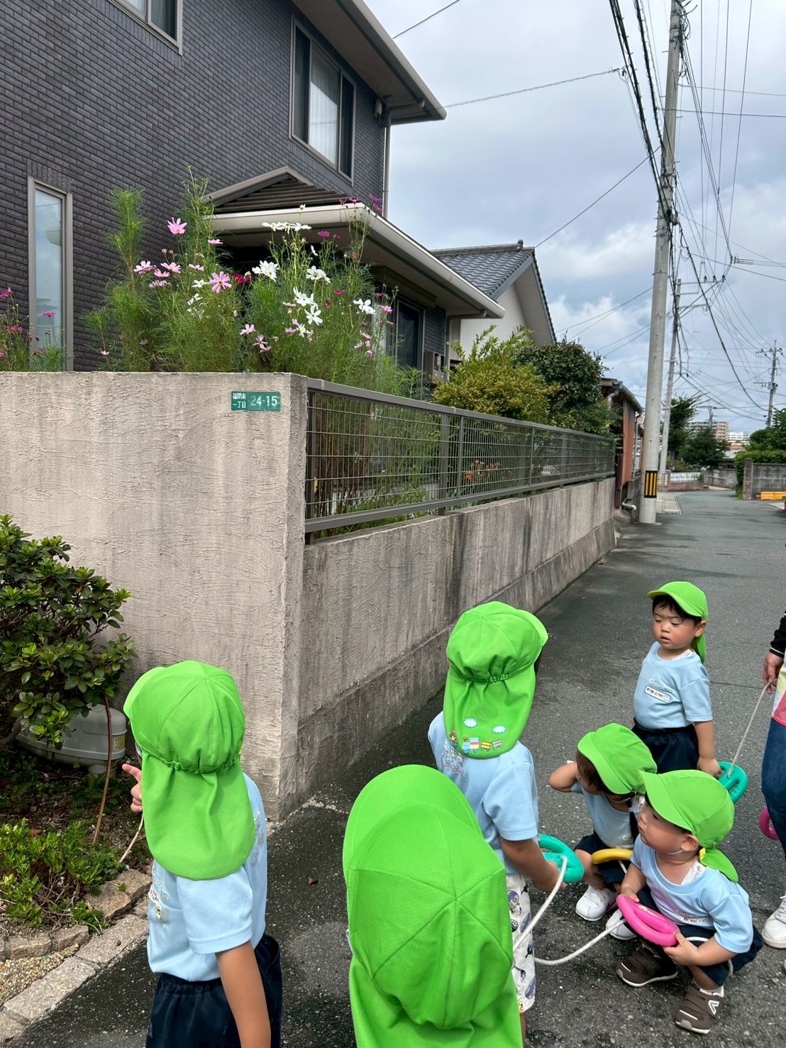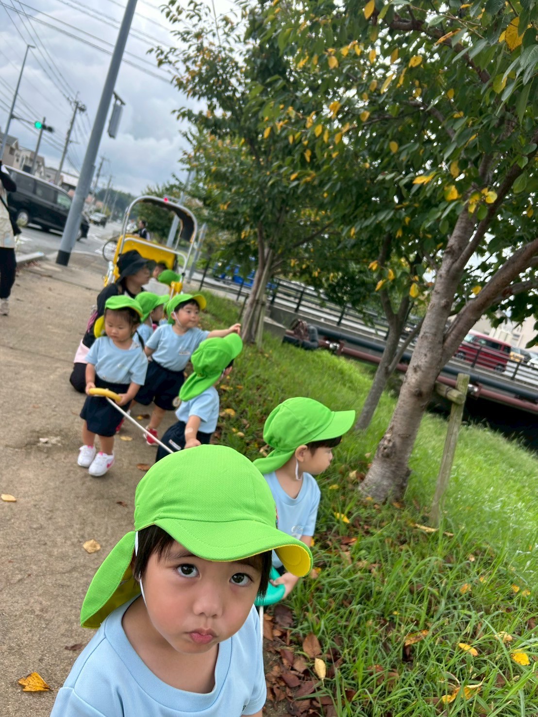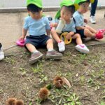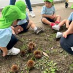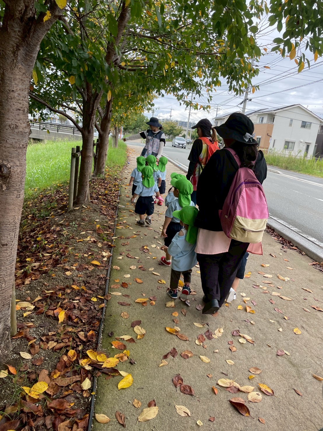 もうすっかり外は秋🍂になり、猫じゃらしや落ち葉がいっぱいありました★🌲どんぐりの木には 緑のどんぐりが見え、彼岸花、こすもすも咲いていました。また、大きな木からはイガクリ🌰も落ちていてイガにも興味津々でした✨