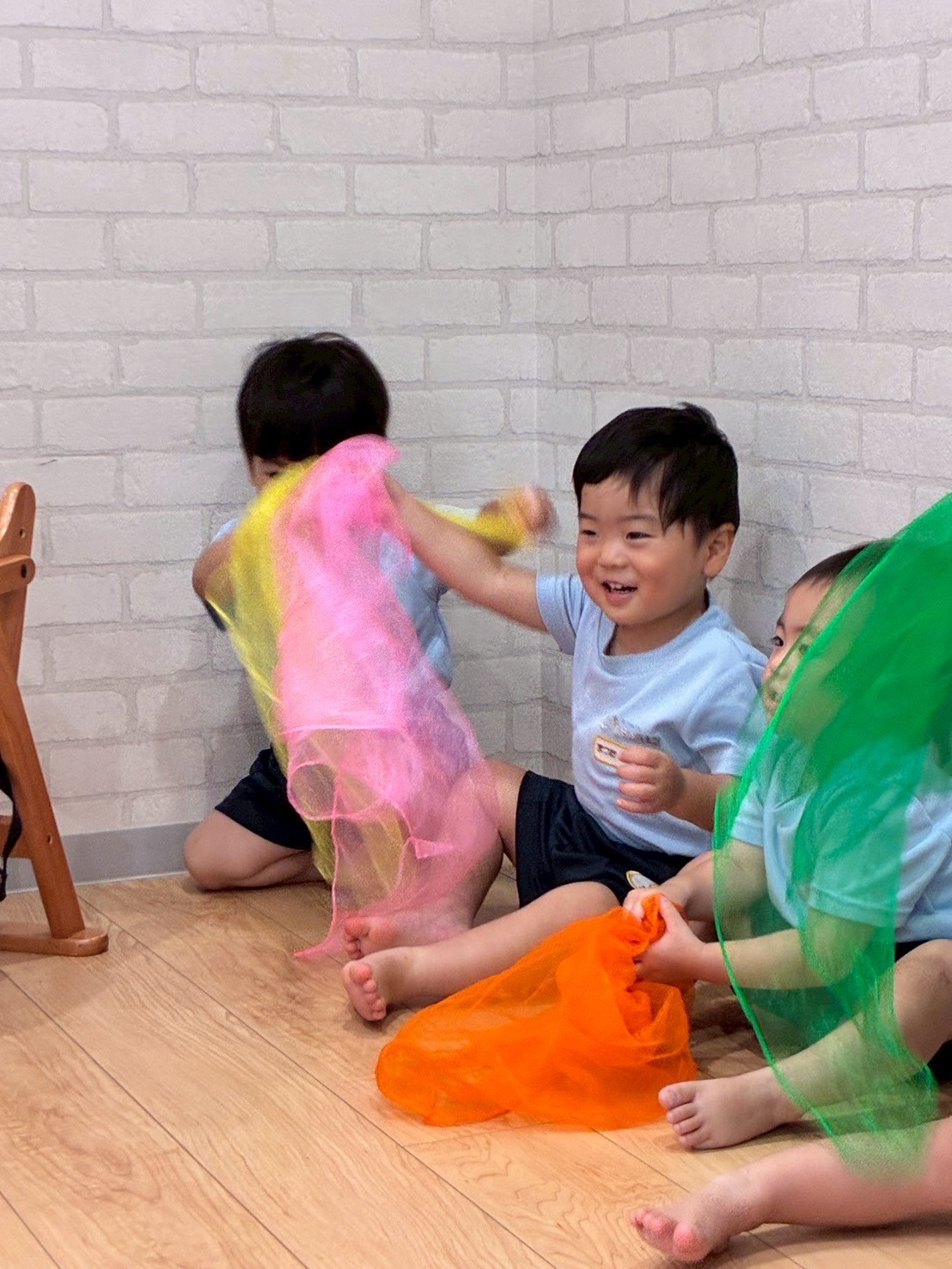 「このおとなあに?」では、まゆみ先生の真似をしながら体を動かしたり、好きな色のハンドベル🛎を「トン✨」と鳴らしたりして楽しみました☺️