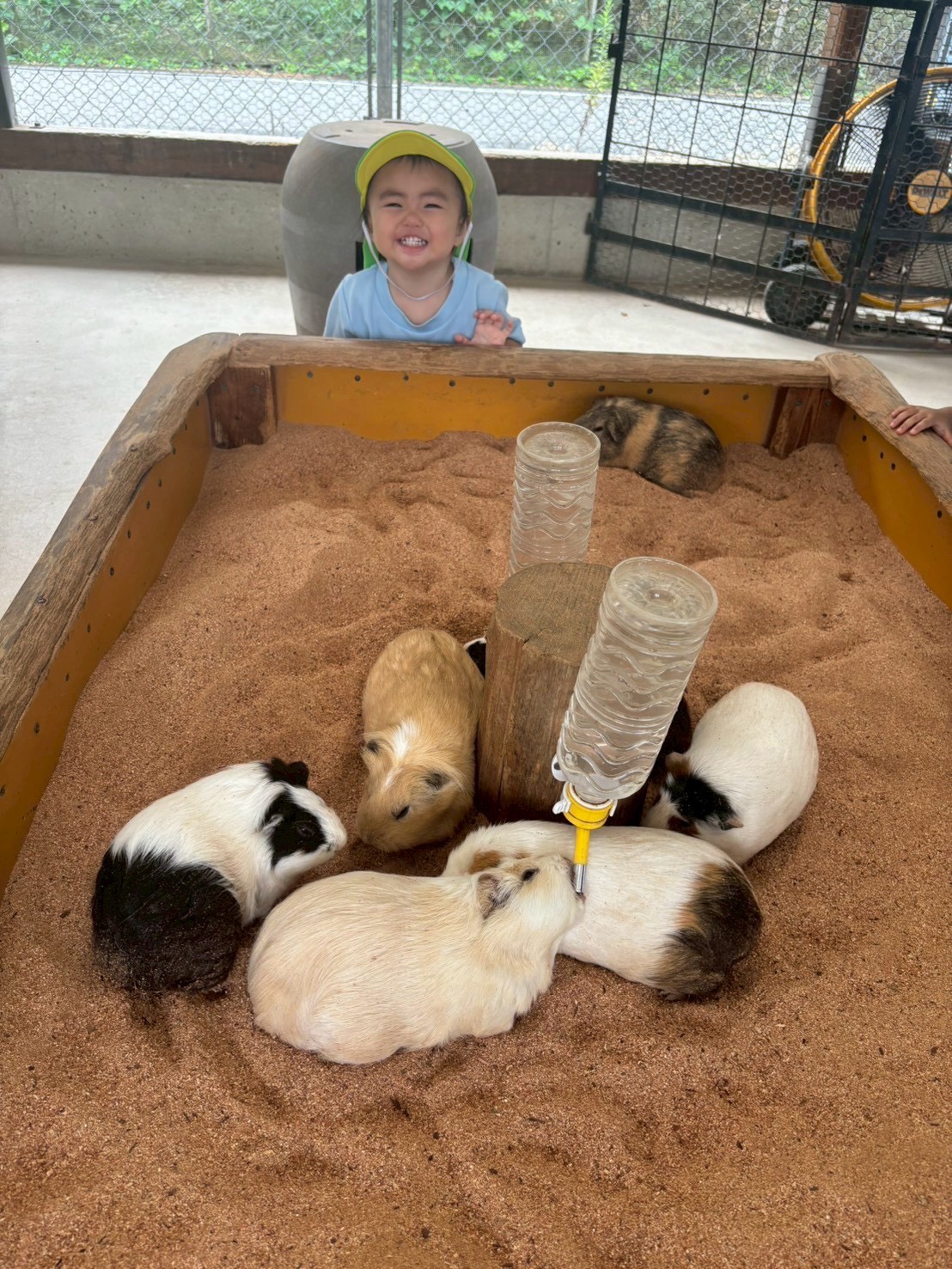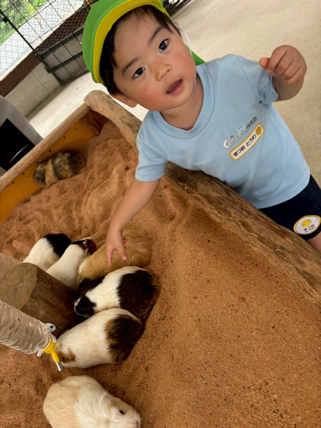 動物園に着くと、「わ〜やぎさん🐐とりさん〜🦜」と知っている動物さんの名前を呼んでいました☺️モルモットにタッチすることもできましたよ🤗お約束の優しくヨシヨシで触ることができて、モルモットさんも嬉しそうでした❣️餌も怖がらずにあげてとーっても楽しい1日でした✨