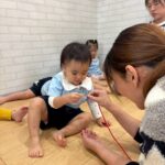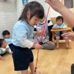 『風が吹いたら』の絵本を見たり、みんなで紐通しにチャレンジ🪡
