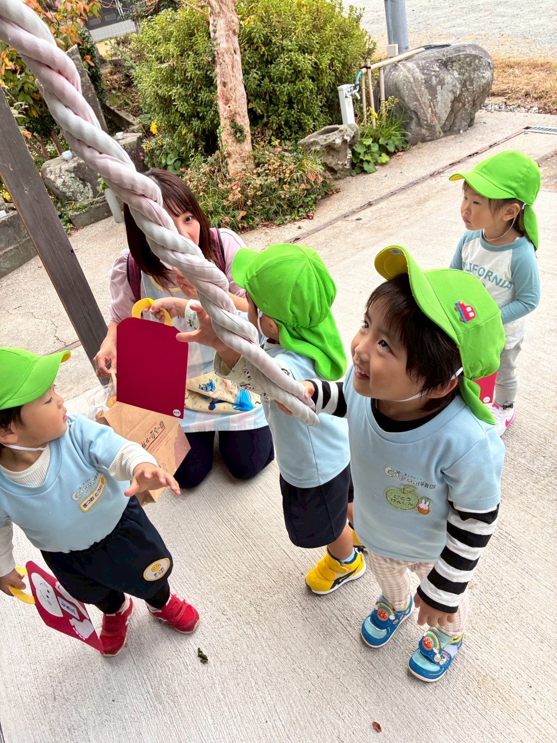 千歳飴の意味を聞いた後は、両谷公民館にお参りに行きました✨七五三のお話しをよく聞いていた子ども達、、