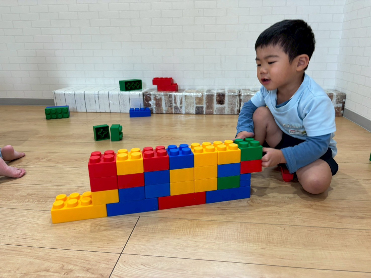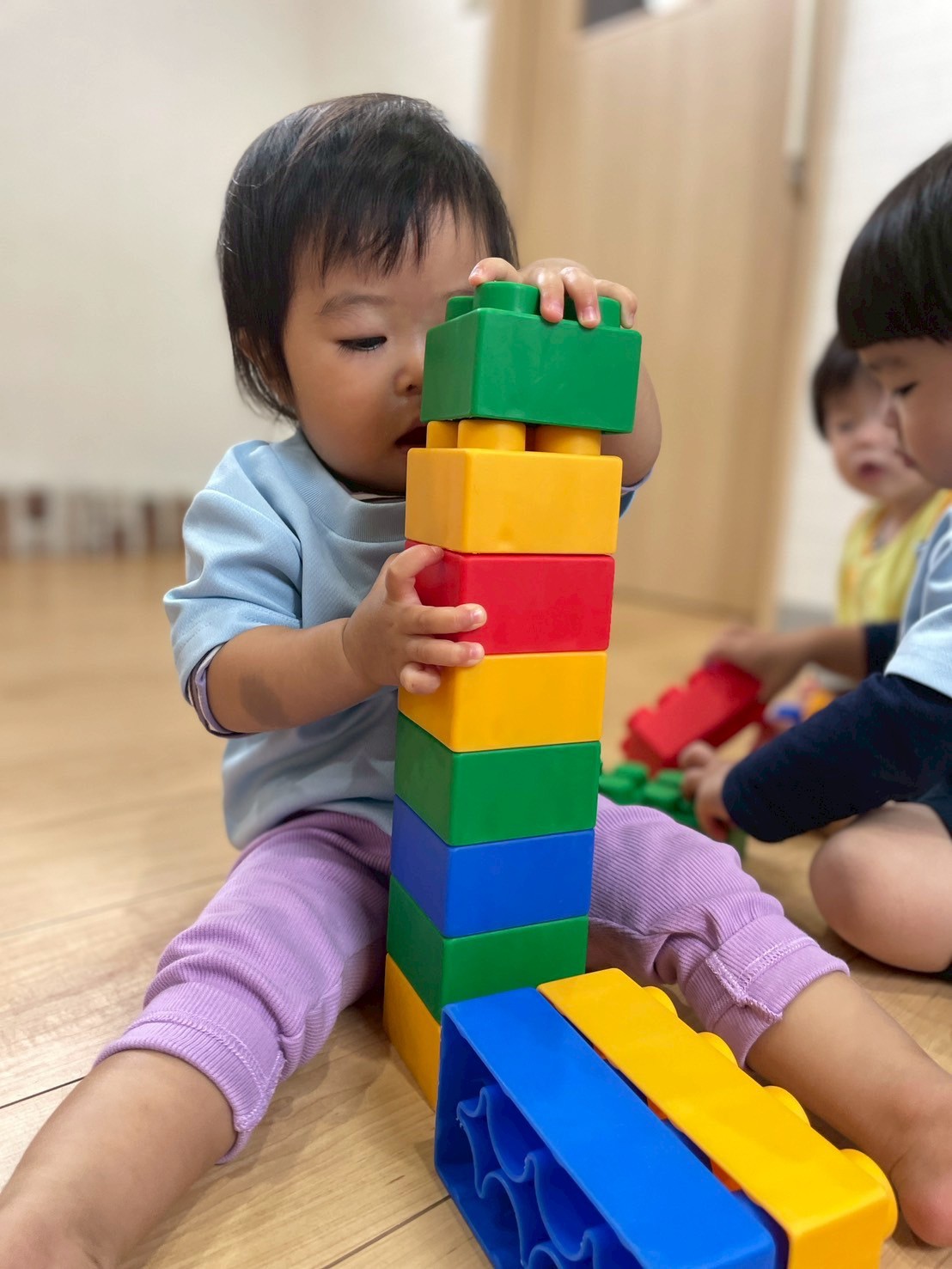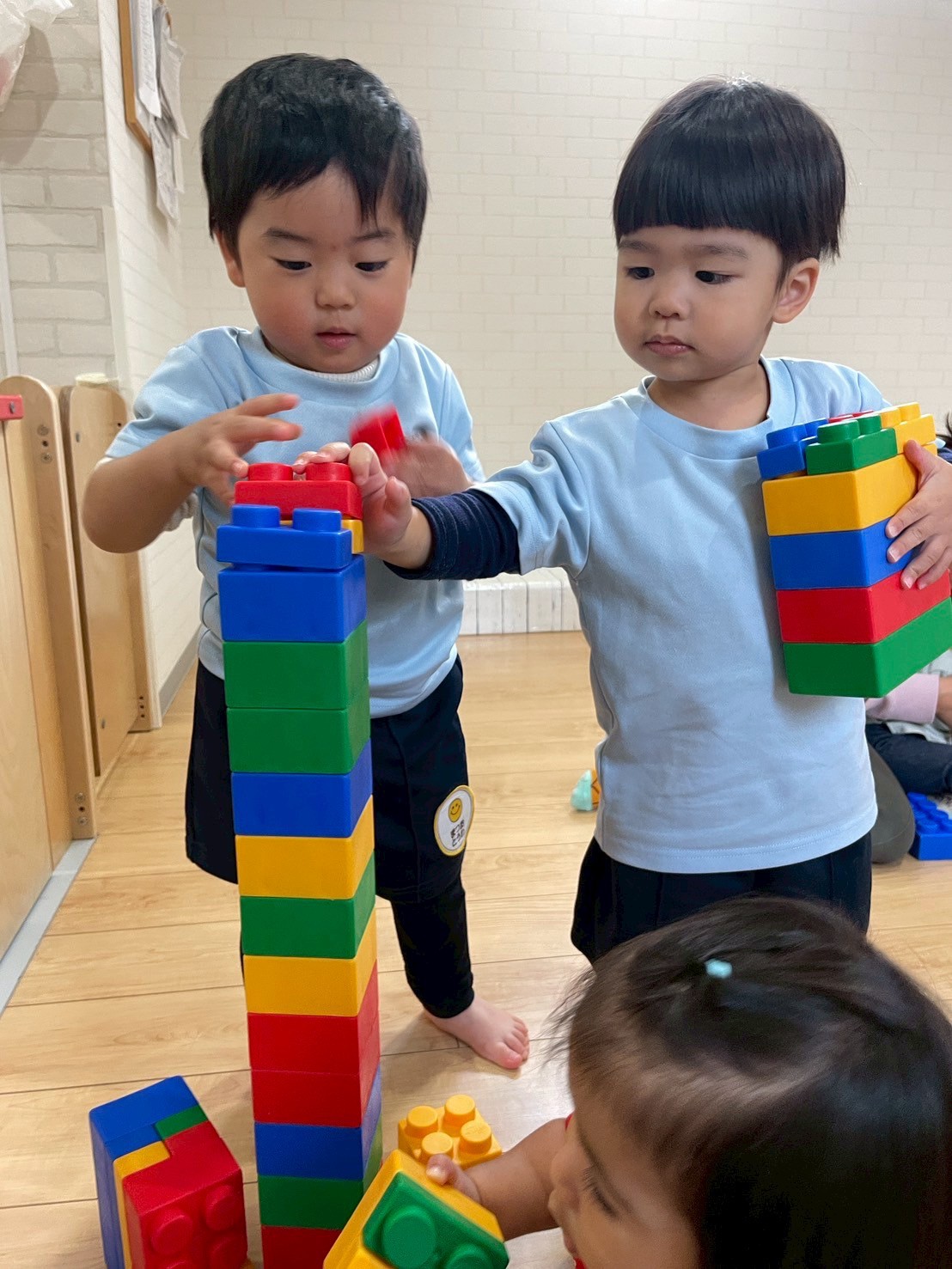 ブロックで新幹線🚄を作ったり、自分より高く積み上げるお友だちもいましたよ🧱