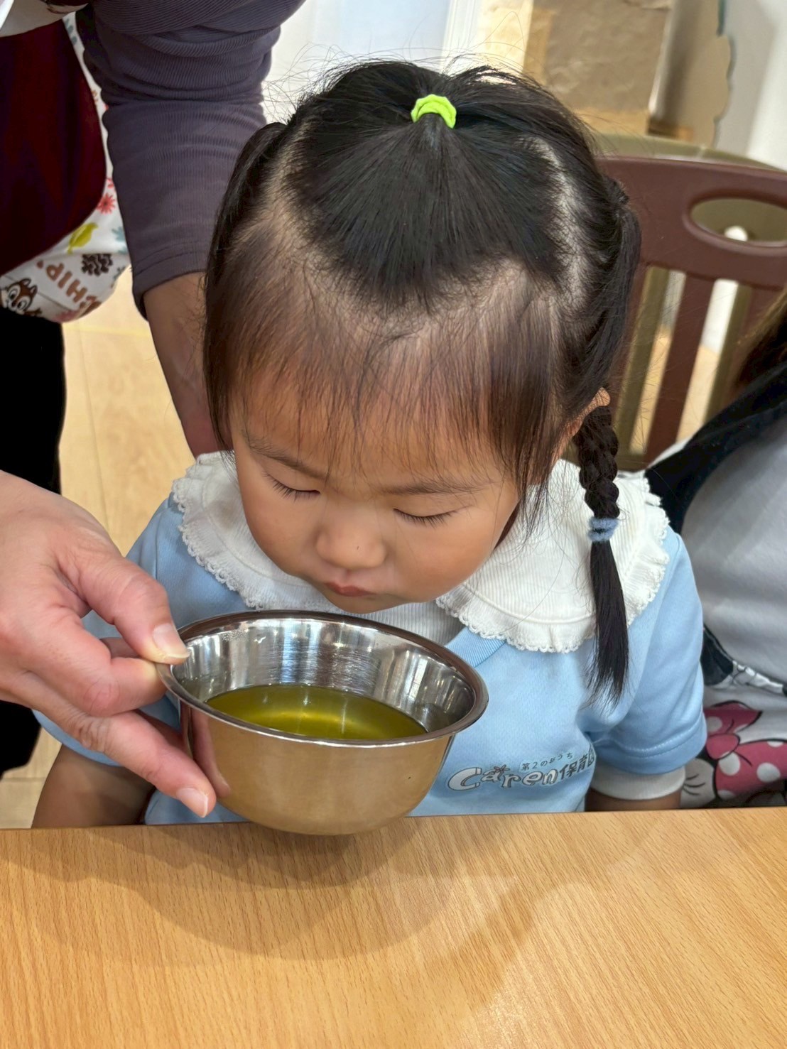 すっぱいにおいで嫌なお顔になったり、苦味は少し飲むと器をポイっとよけたりと、素直な反応がたくさん🙆🏻♀️お出汁はゴクゴク飲んでみんなにっこり☺️おかわりー!という声も聞かれていました🤭その後はくりえいと園からぱんだ組のお友だちがやってきてくれて🚌一緒に発表会の合同練習をしました🎶とっても一生懸命なぱんだ組さんたち👏素敵でしたよ🥹
