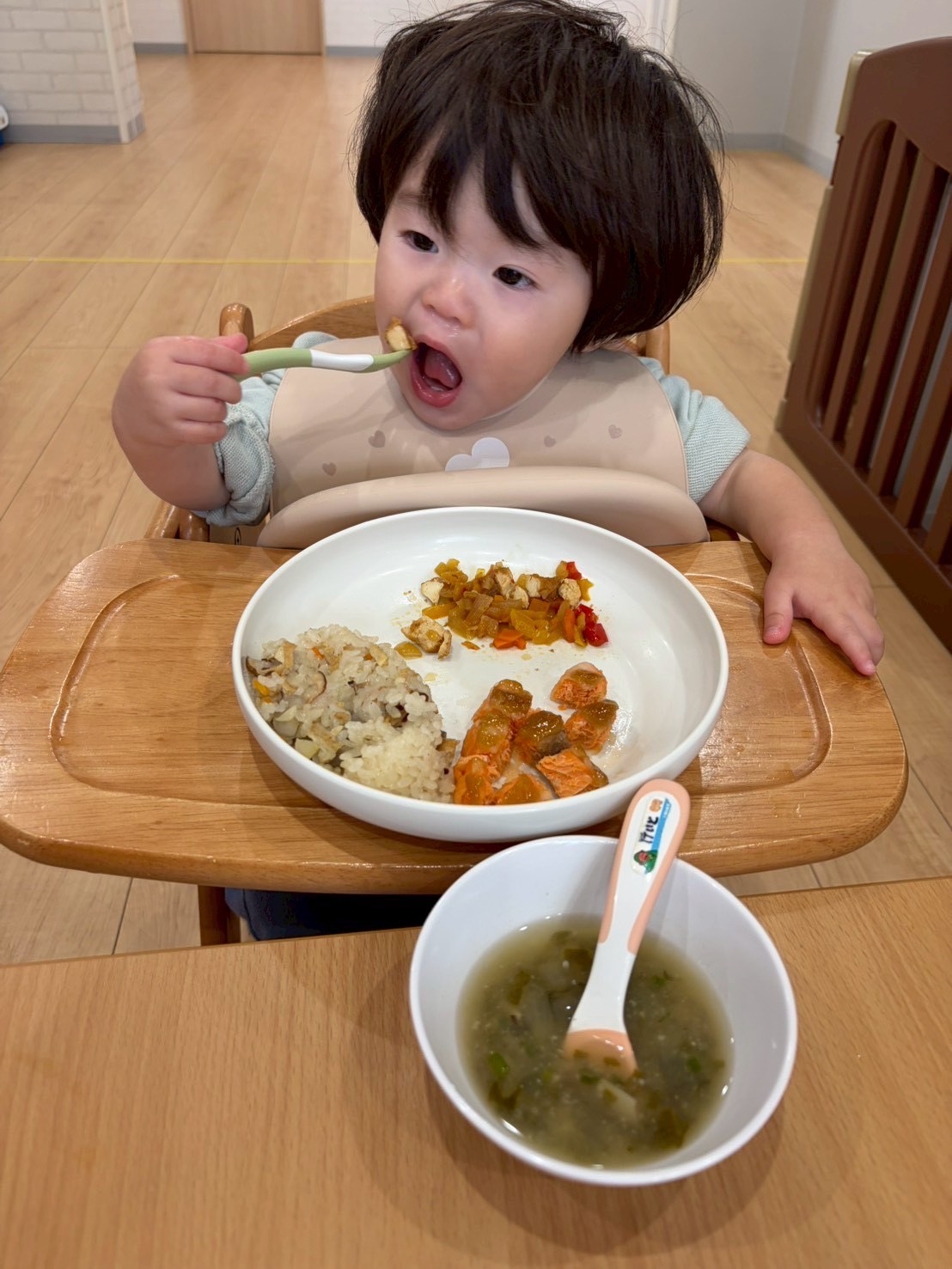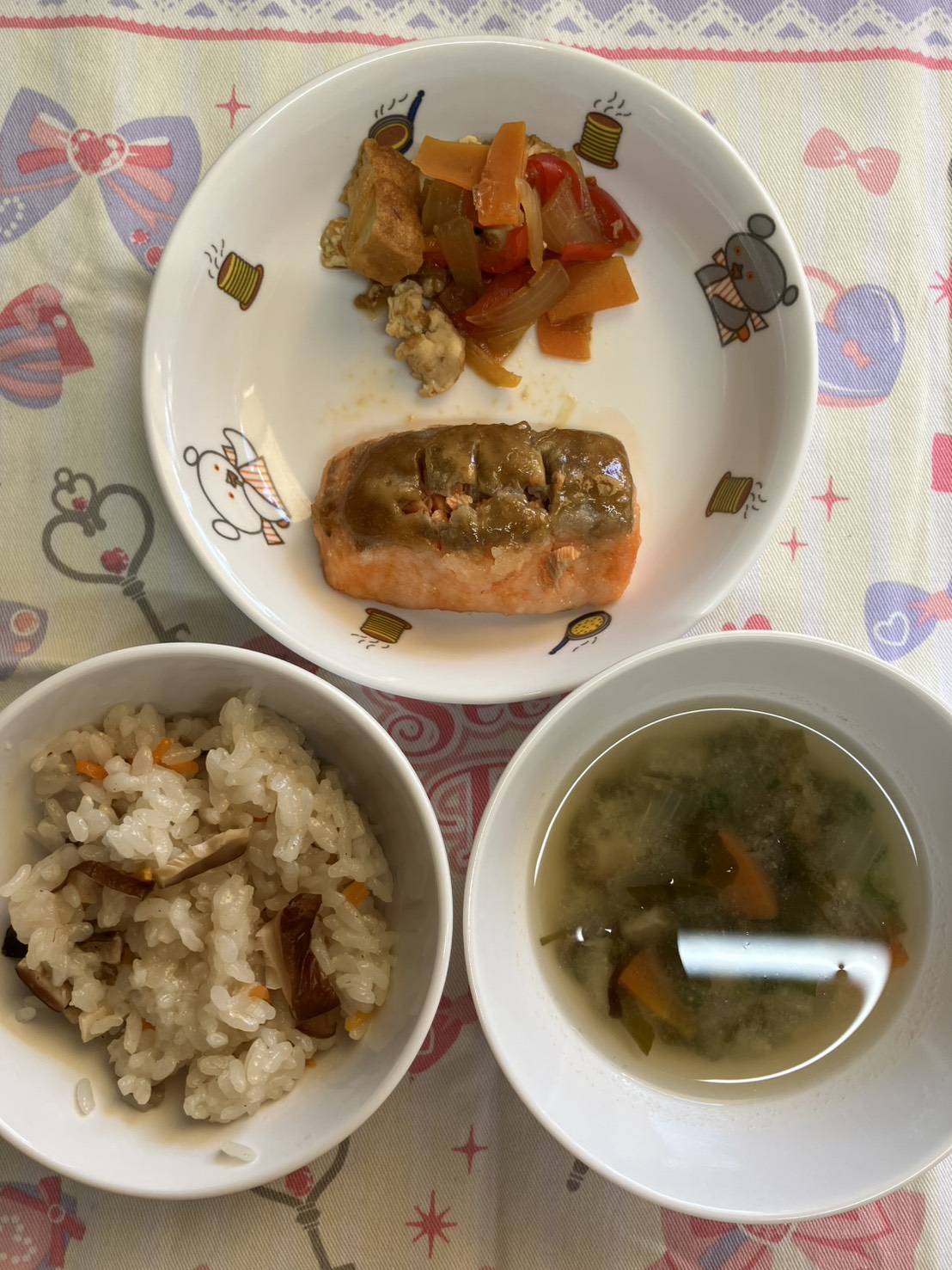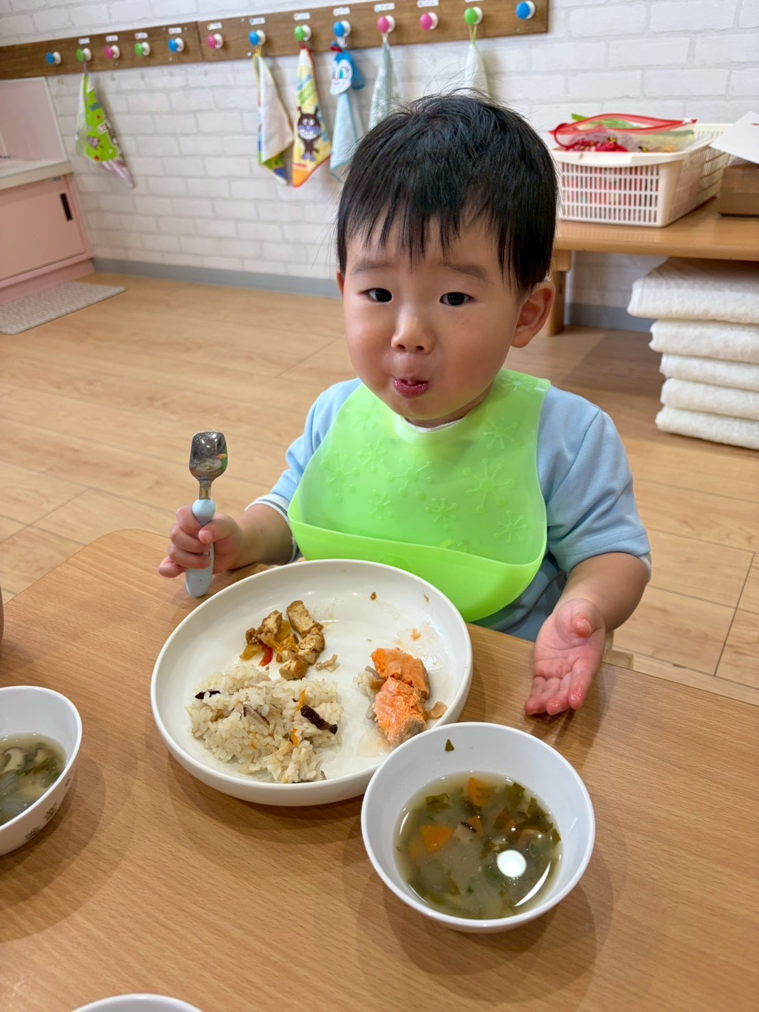 天気がよかったのでゴロゴロと芝生に寝転んだり、鬼ごっこや砂場遊びなど、好きな遊びを楽しみました💕【福津園の今日の給食です】