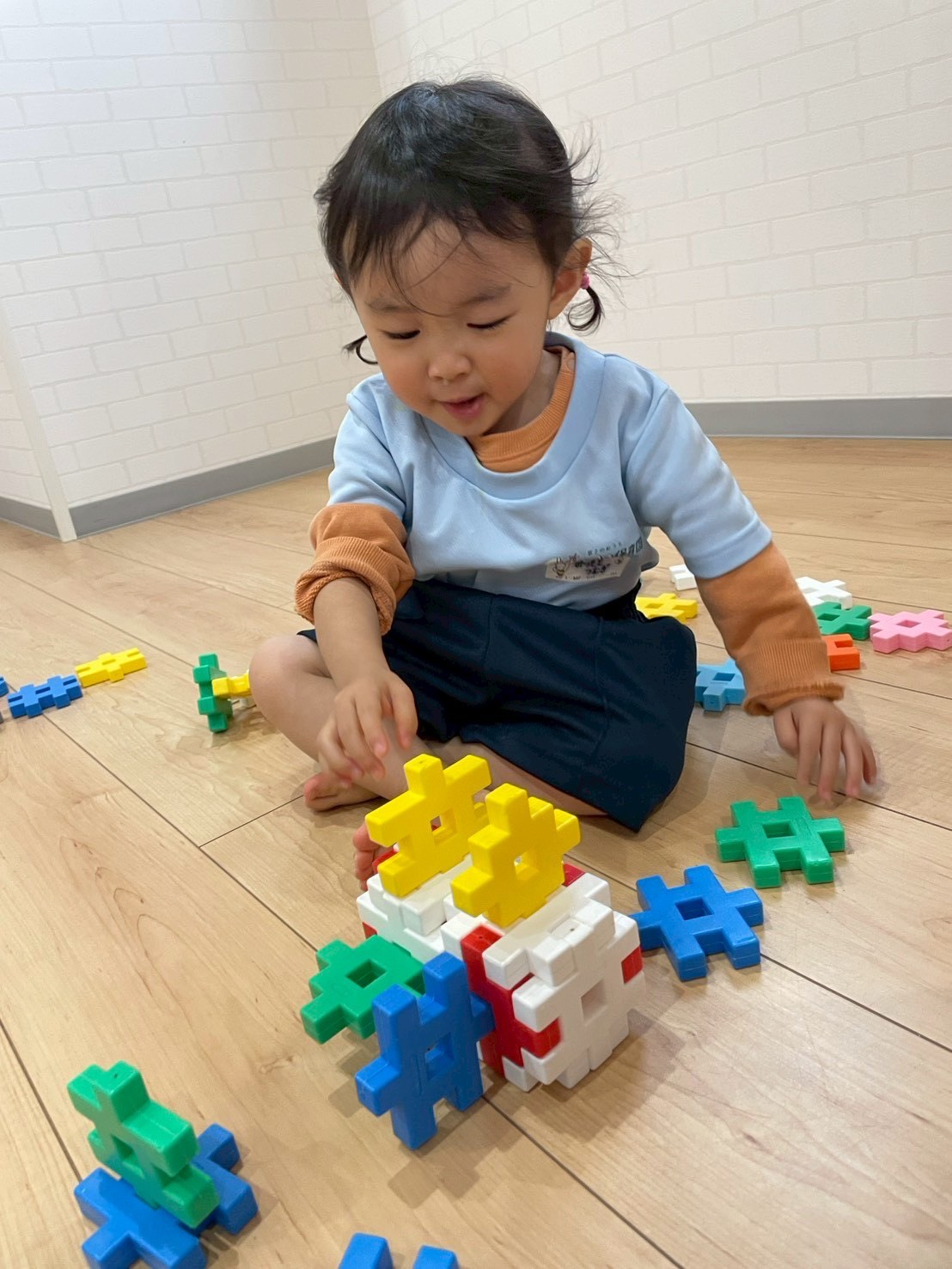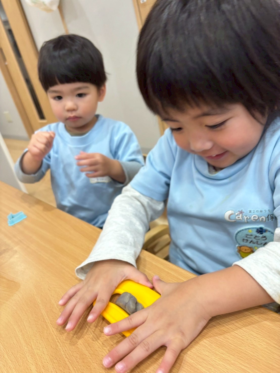 今日は粘土遊びとブロック遊びに分かれて好きな方を選んで過ごしました☔️