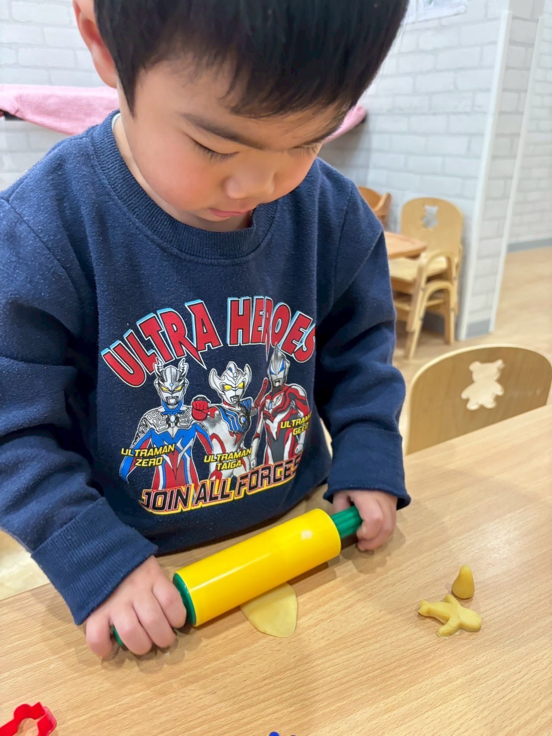粘土チームはこねてちぎって感触を楽しみながら、型抜きに挑戦したり好きなご飯を作っていました🍚✨