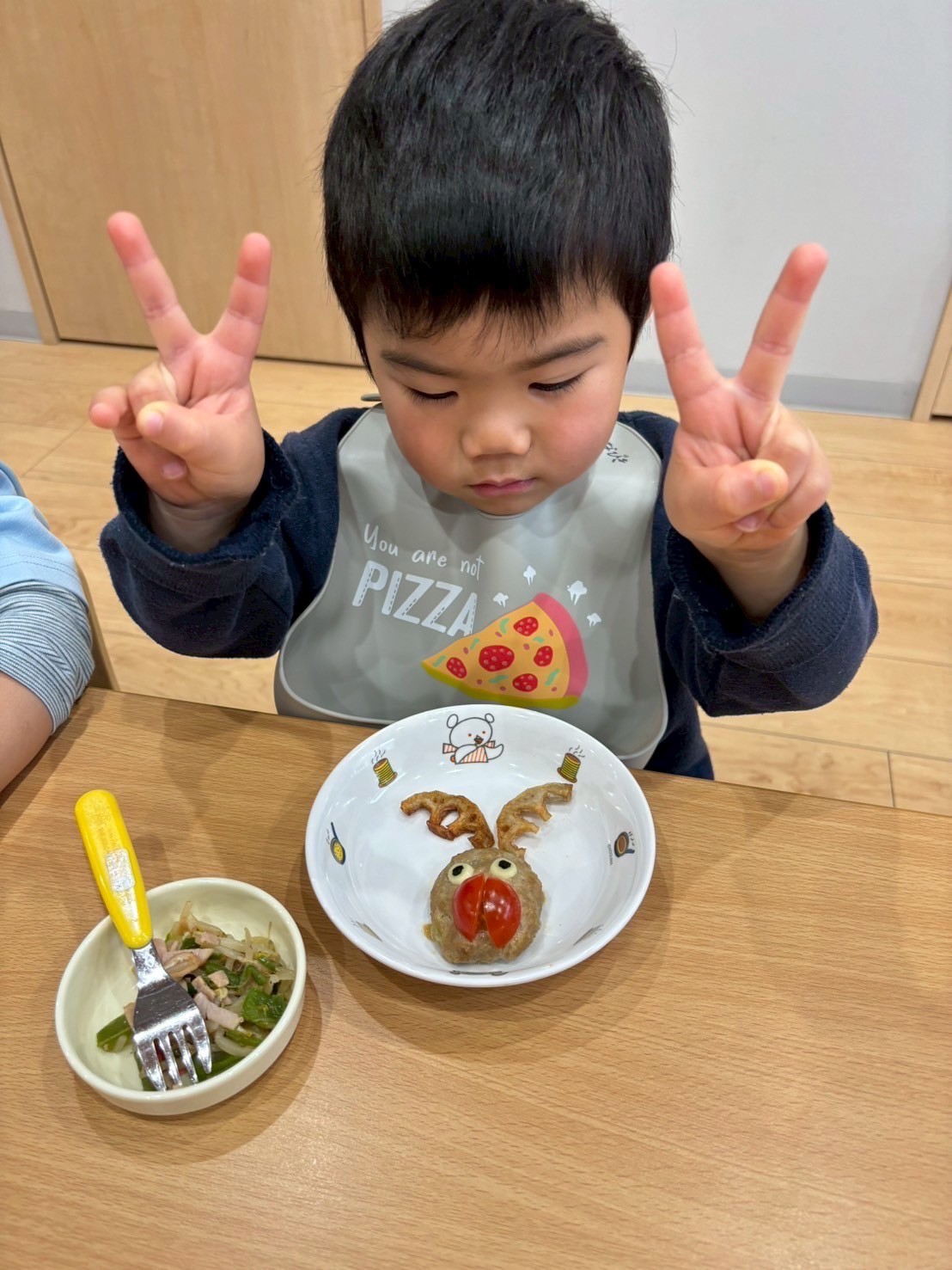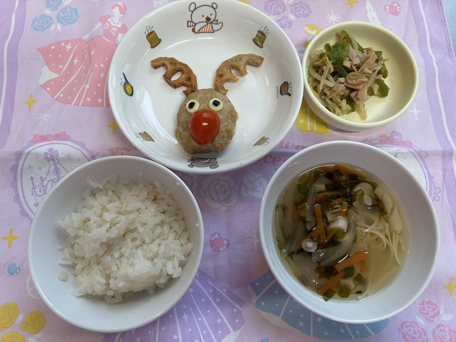 給食の可愛いトナカイハンバーグをみんな嬉しそうに食べました🦌💕【福津園の今日の給食です】