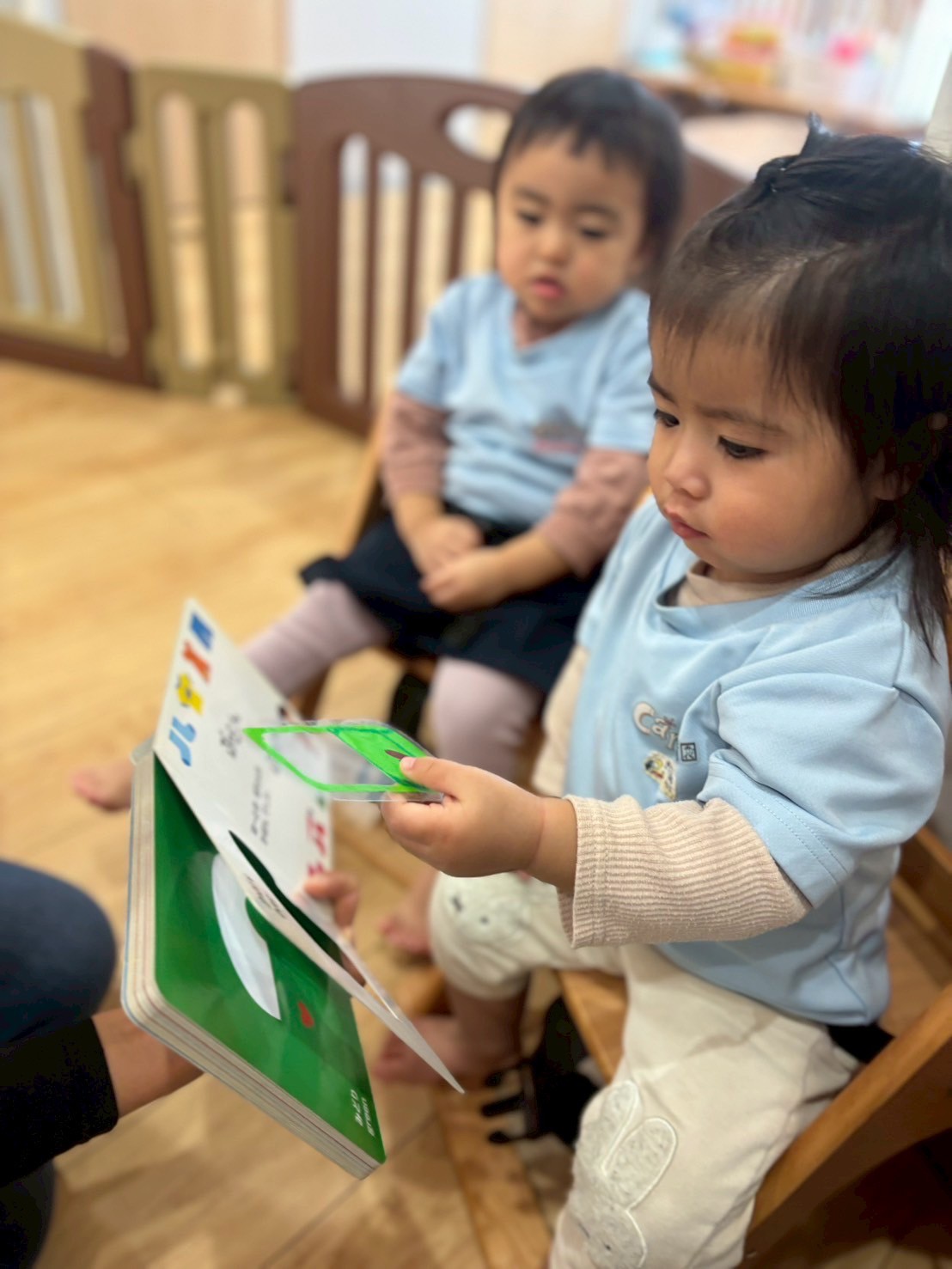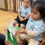 元気にABCソングを踊り🕺先週から教えてもらった身につける物の英語を発音しながら、絵本の物と絵合わせをしました👖👕👜よーーーく見ているみんなはスムーズに正解の物を選んでいましたよ👏