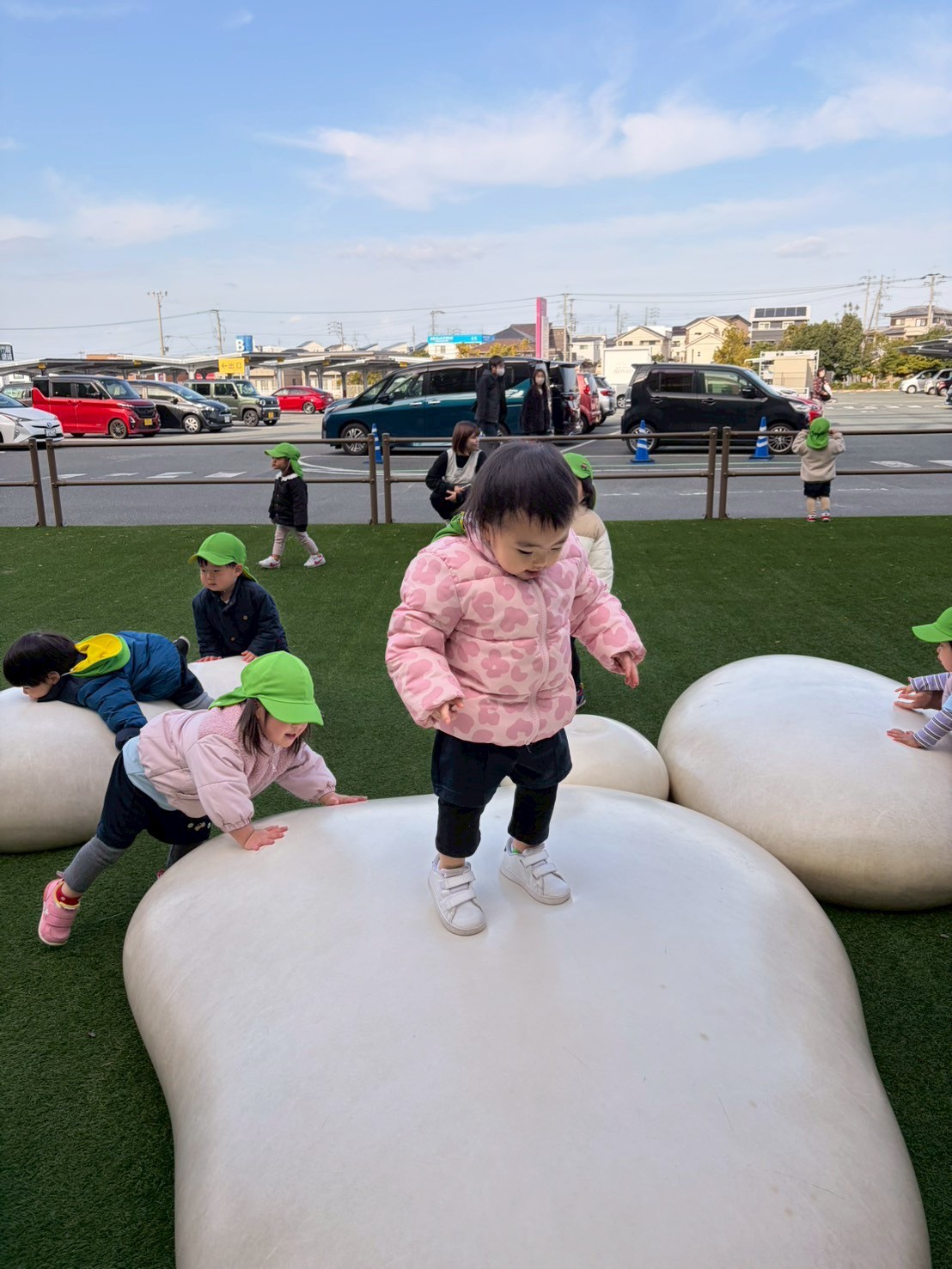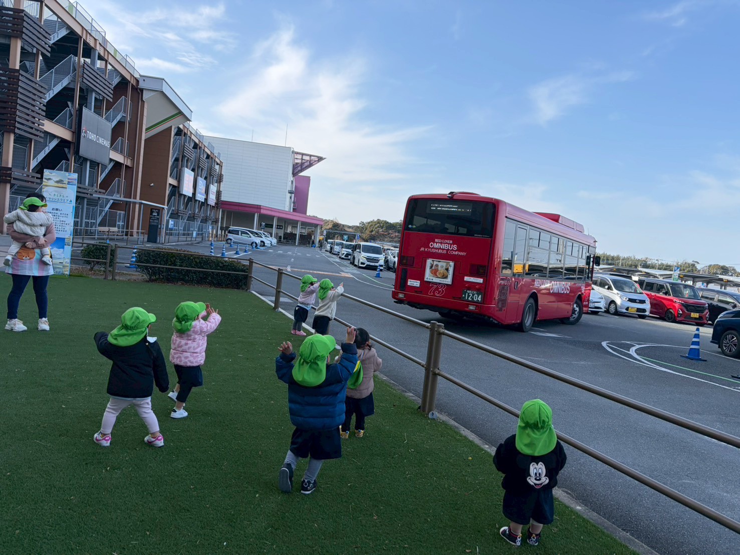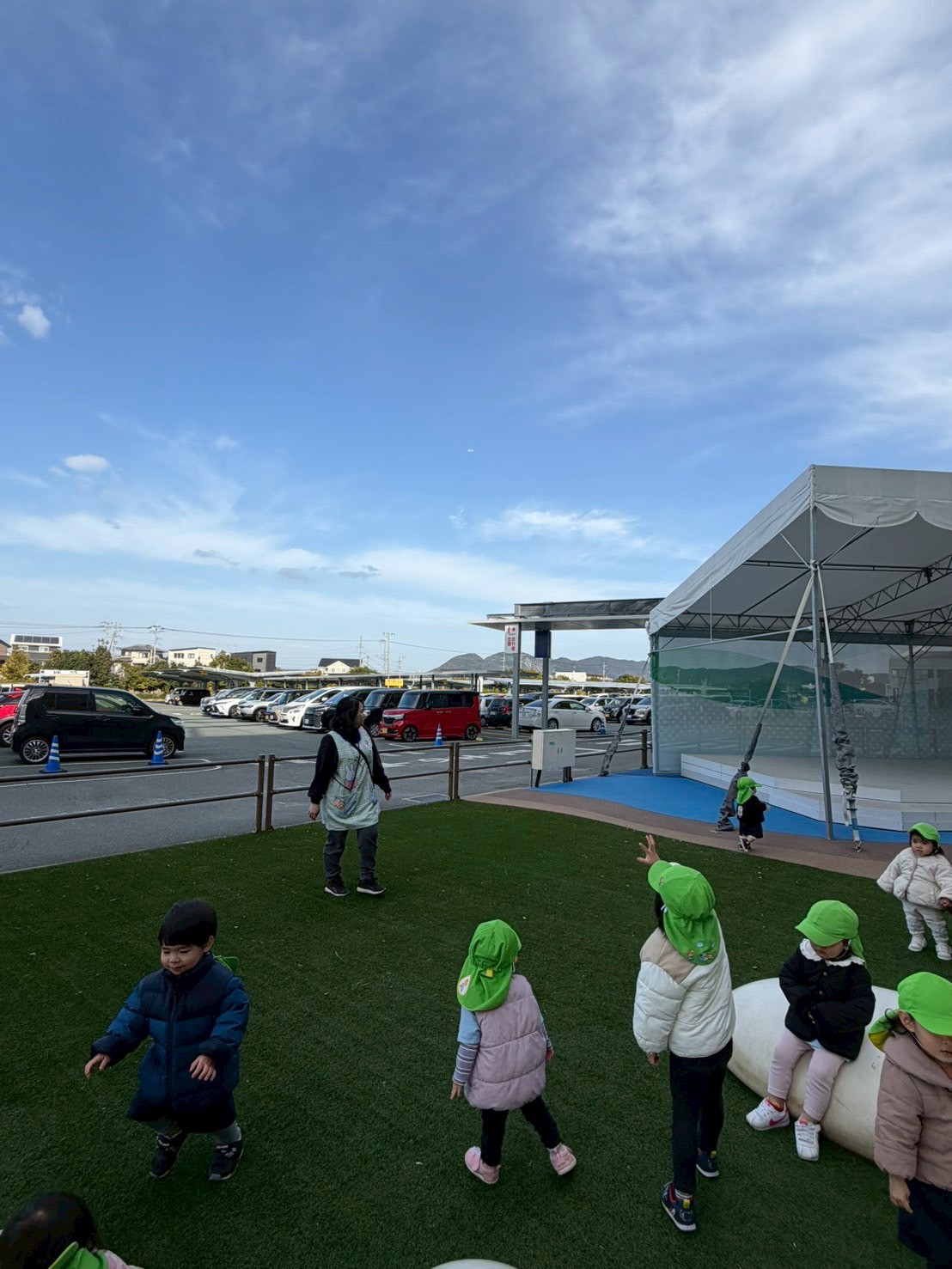 今日は暖かいお天気だったので、久しぶりにイオンの噴水広場へいきました☀️広場では、クッション遊具で遊んだり、芝生やステージを走り回ってたくさん身体を動かしましたよ🏃💨ヘリコプターが何機も飛んでいたり、バスも近くで見れて大興奮の福津園の子どもたちでした🚁🚌😆【福津園の今日の給食です】