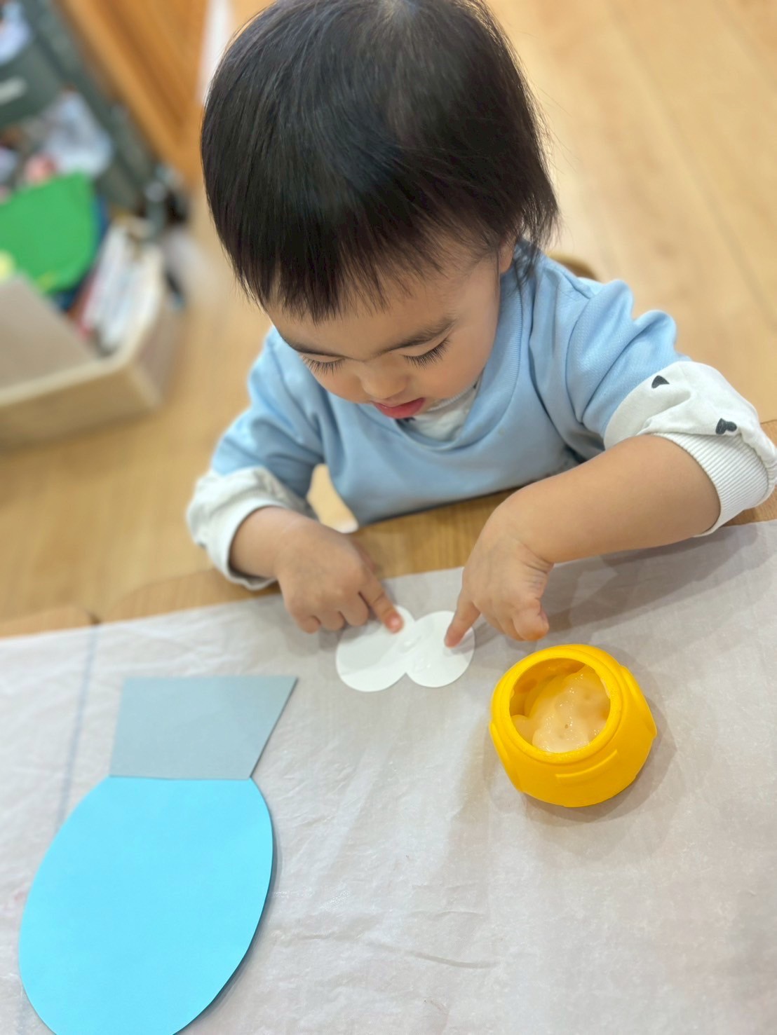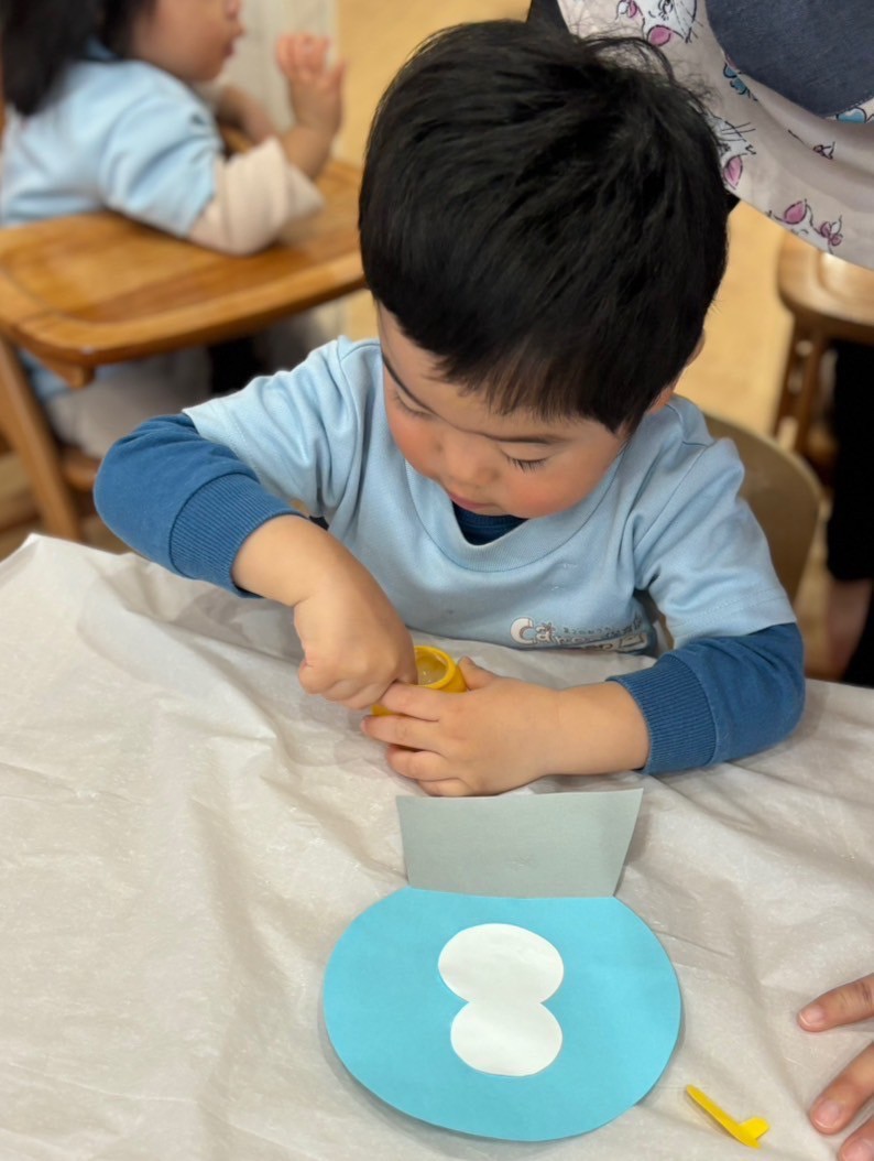 「のりは☝️一本指で使うんだよ〜」と、みんなで確認してからスタート🎵