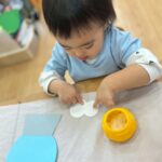 あっち向き、こっち向きのパーツもそれぞれ個性が出ていて、完成がとっても楽しみです💖その後は絵の具遊び🎨