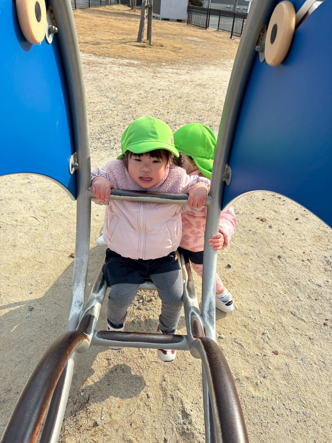公園では大きなシーソーで遊んで、その後は木の実や小石を集めたり、公園内を探索してのびのび遊びました!マラソンに励むお友だちもいましたよ🏃💨