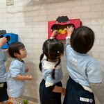 ぱんだ組さんは遠くからでも狙いを定めて力いっぱい投げれていました🐼✨【福津園の今日の給食です】