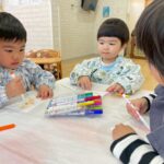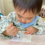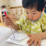 好きな色のマーカーで色をつけ、霧吹きで水をかけてにじみ絵を楽しみました🖼