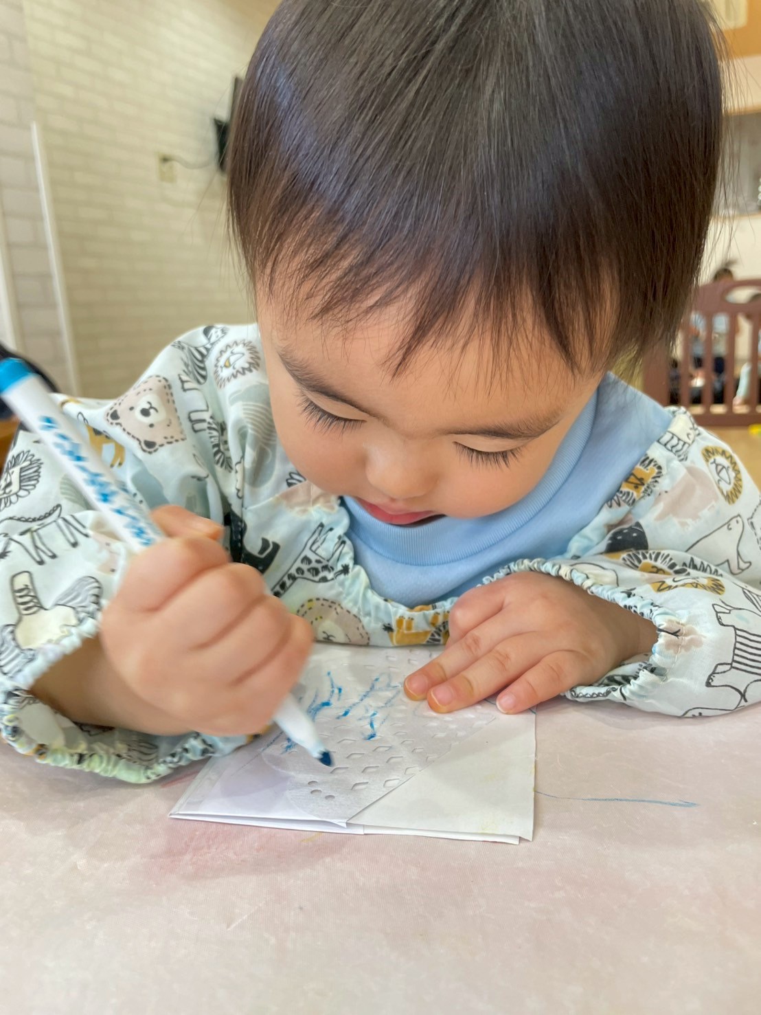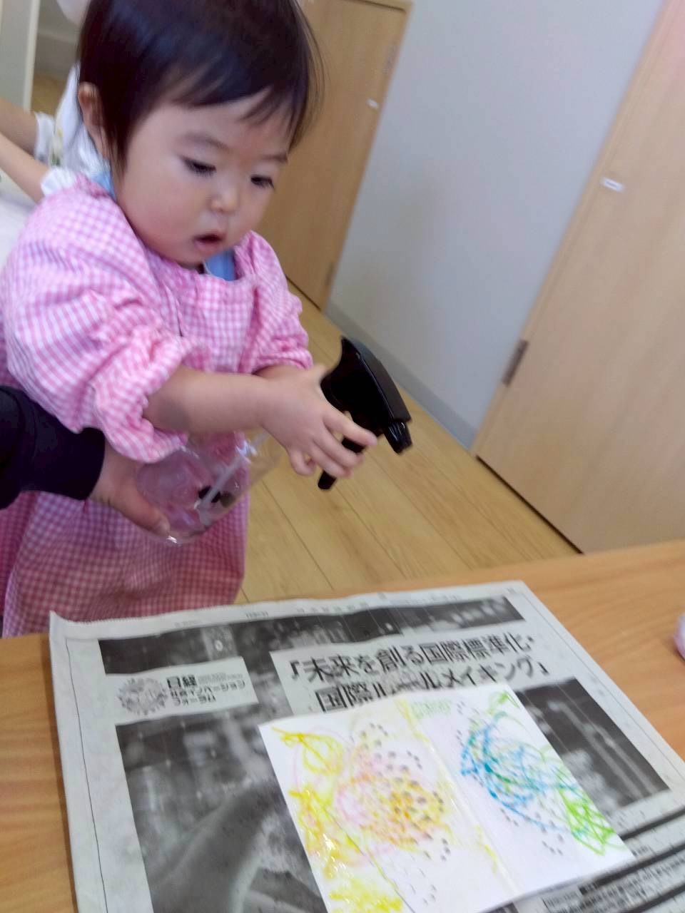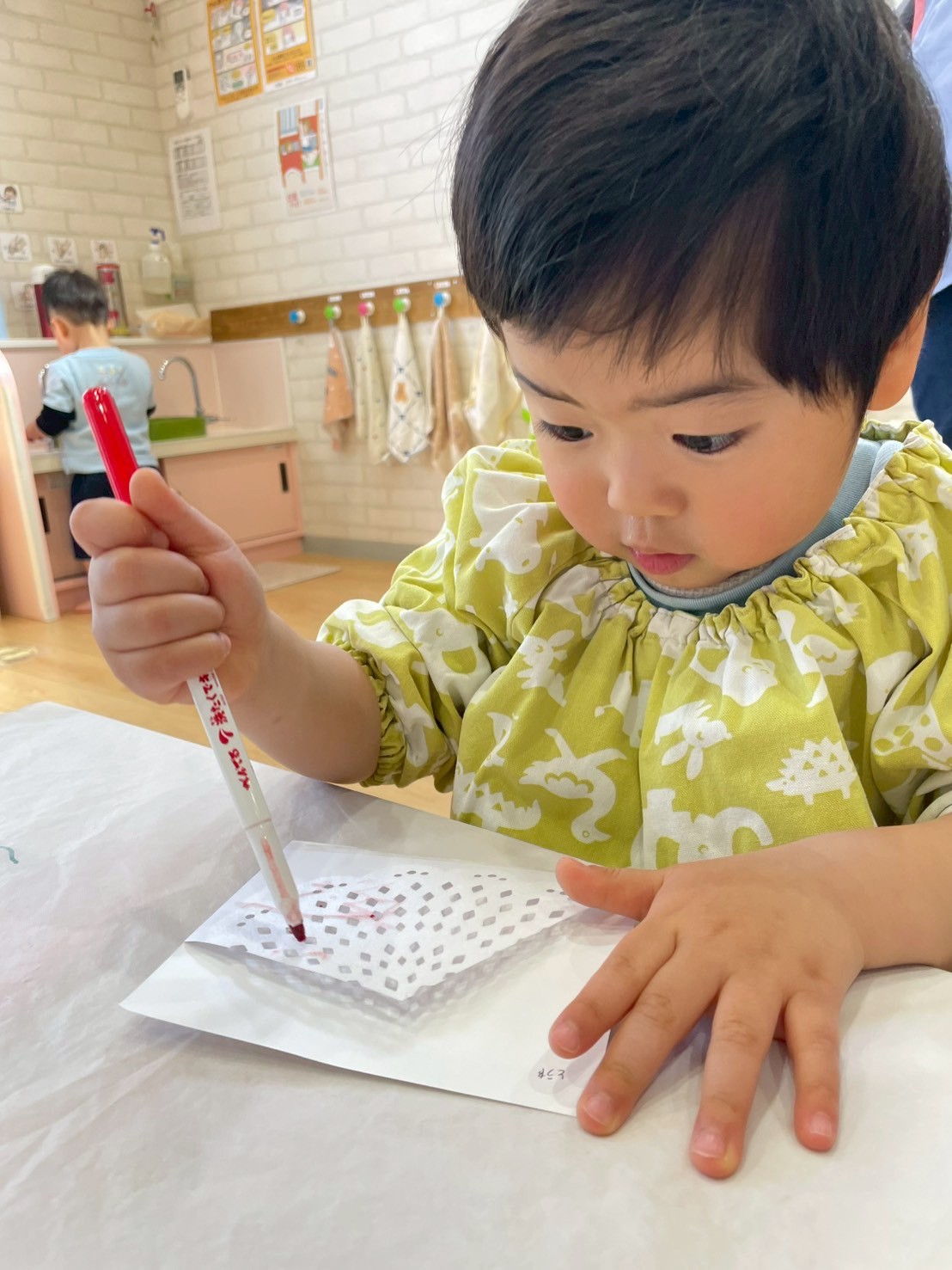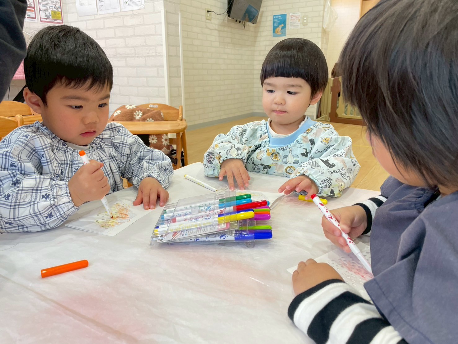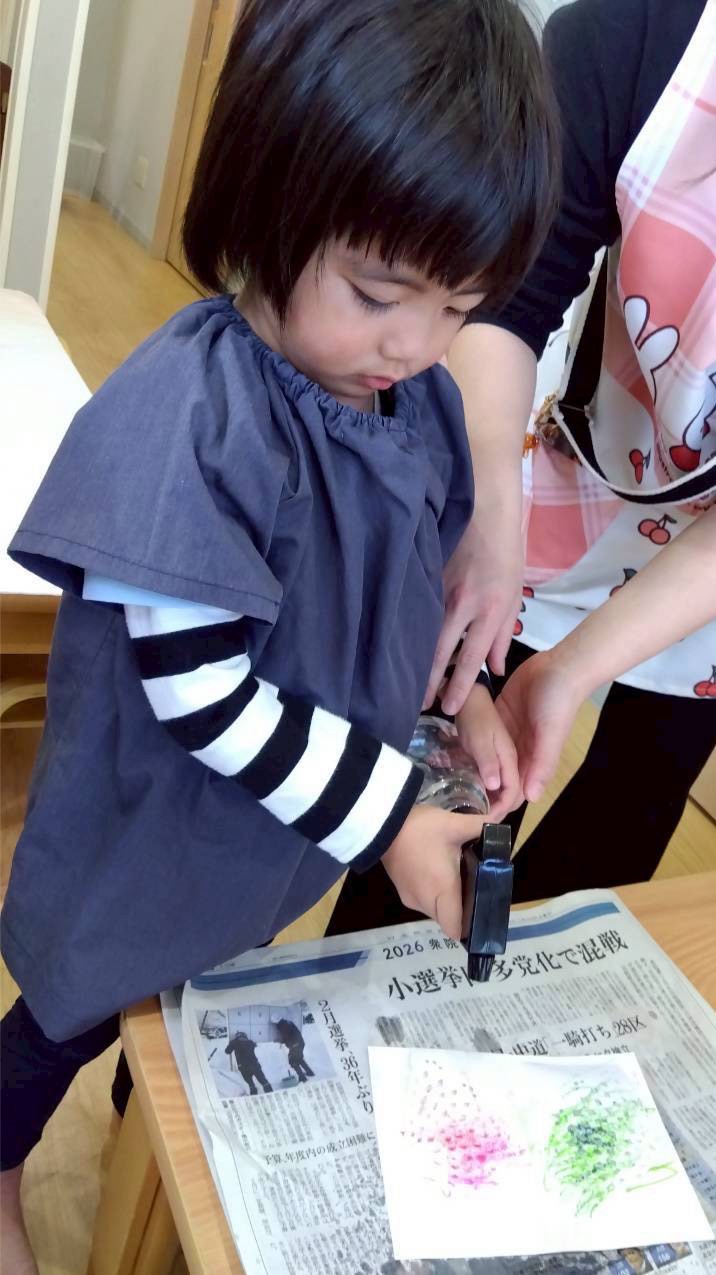 好きな色のマーカーで色をつけ、霧吹きで水をかけてにじみ絵を楽しみました🖼