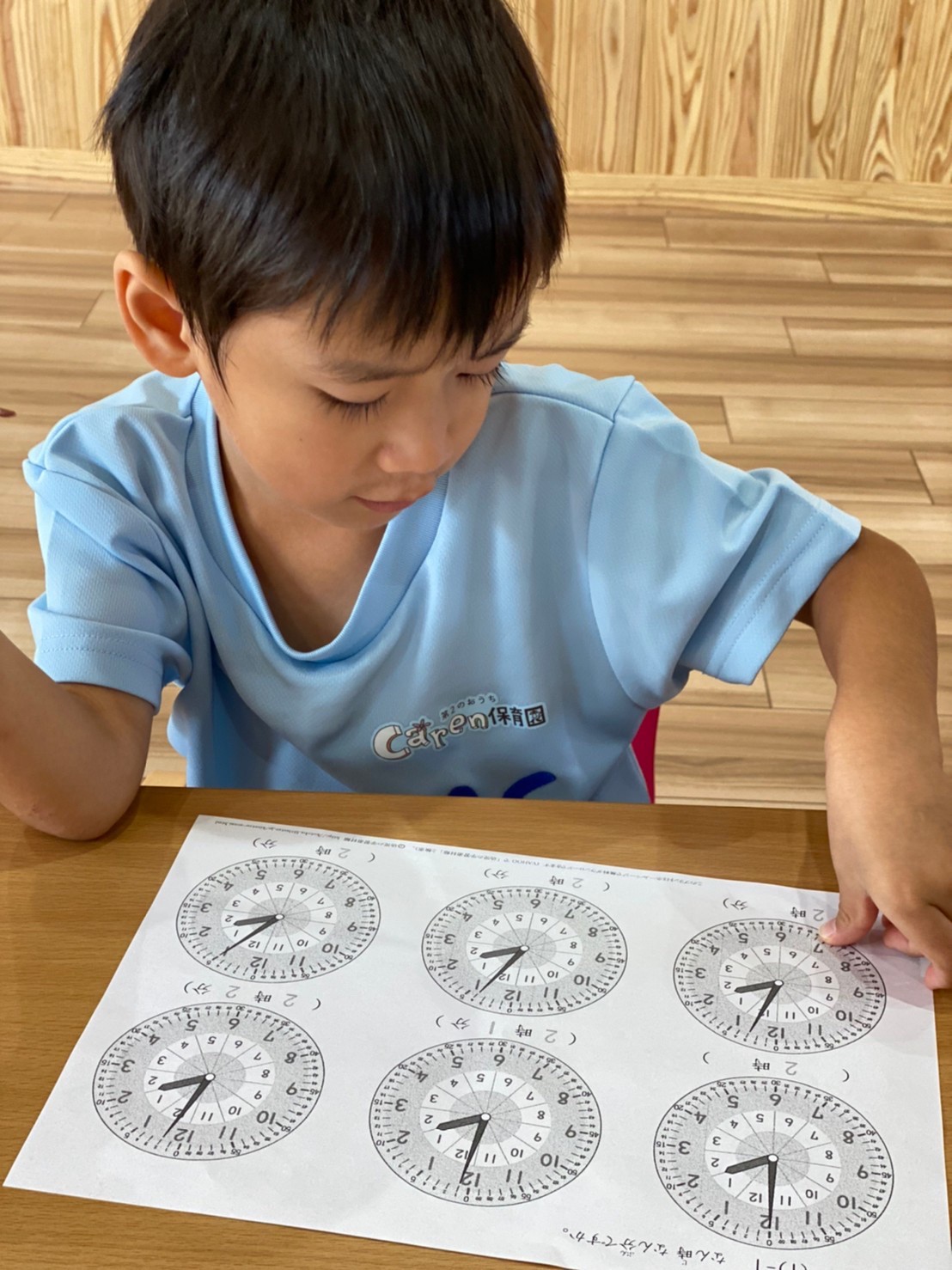 模型を使って何時か理解した後、プリントで再度練習をしました🤔‼️