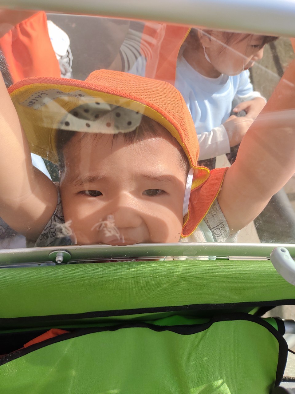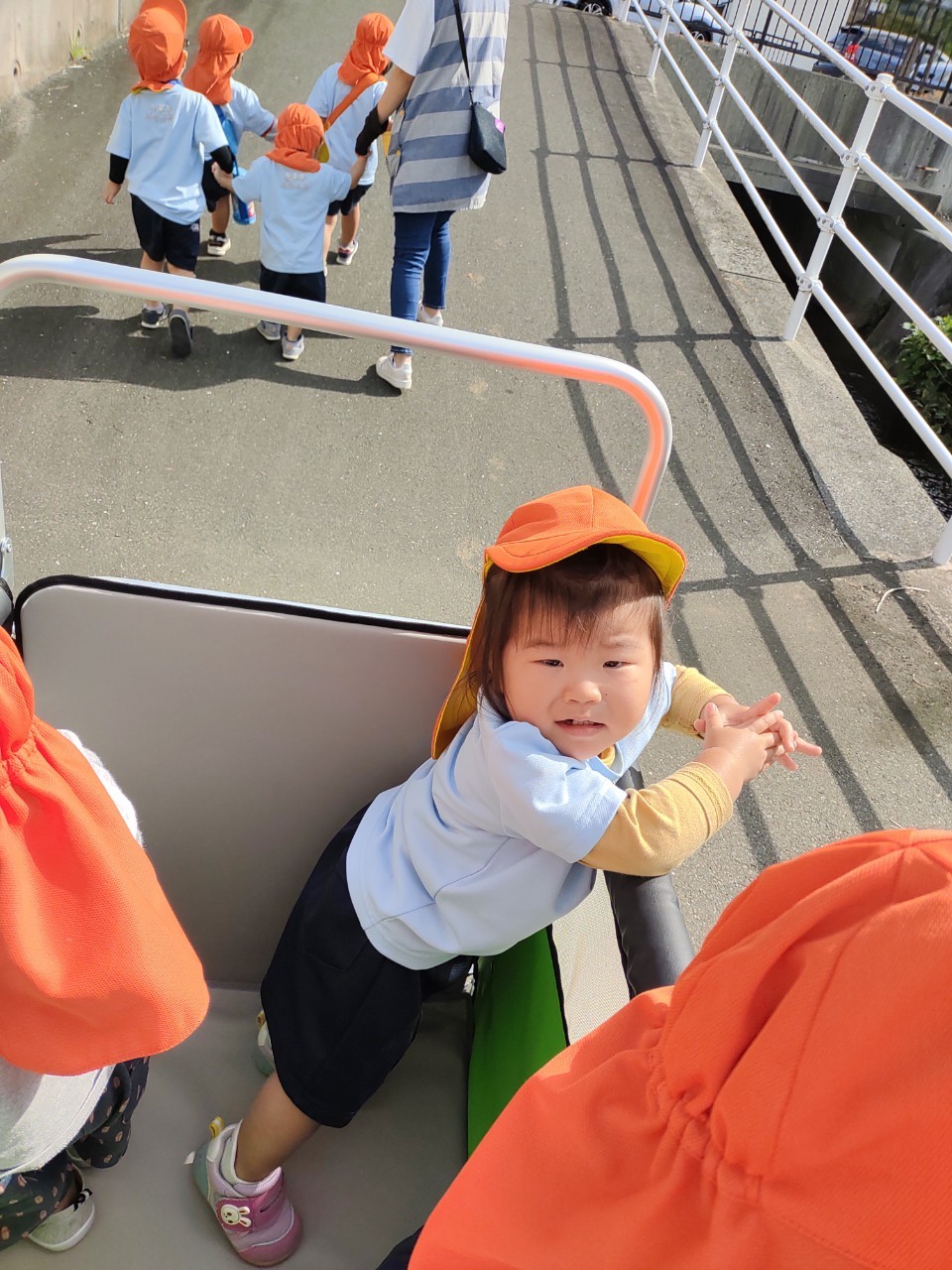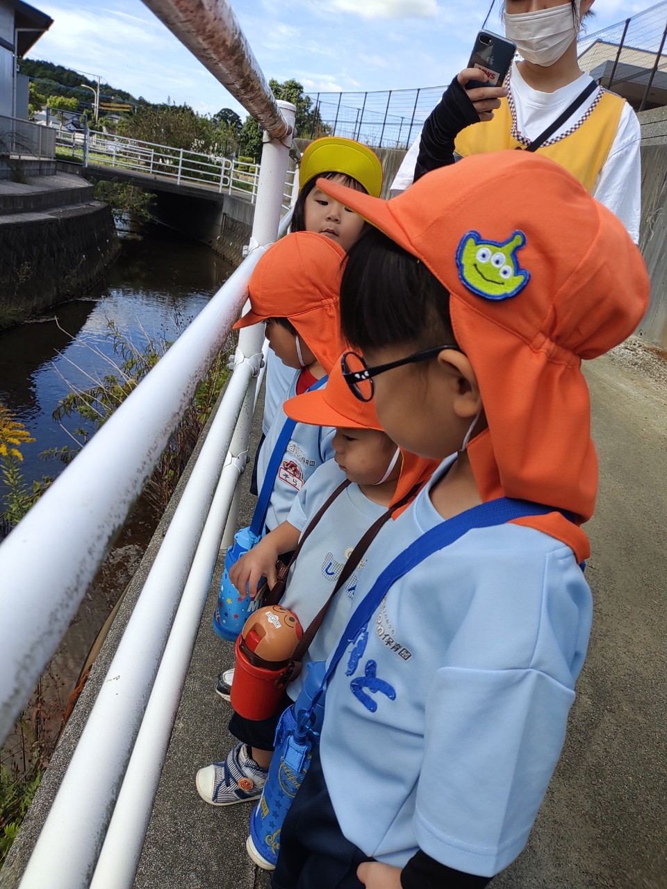 川のコイやたくさんの車を興味津々で眺めて楽しいお散歩ができました🍓(りす、ぱんだぐみ)園外に散歩へ行く。川を眺めたり、秋の風に吹かれて気持ちよく過ごしました💕