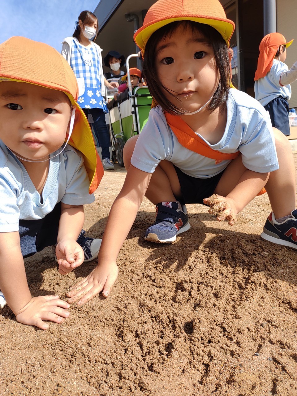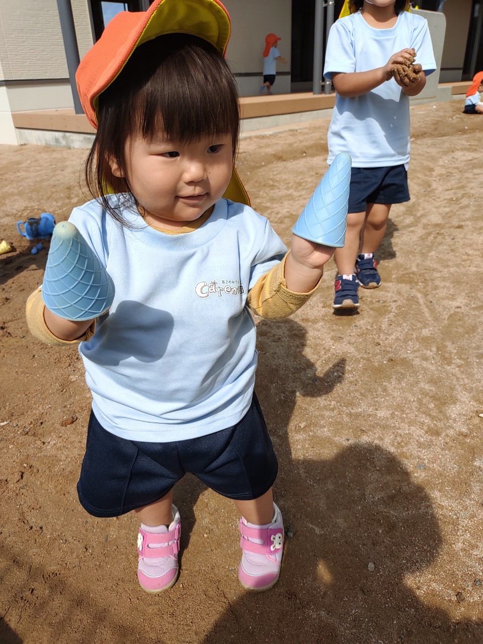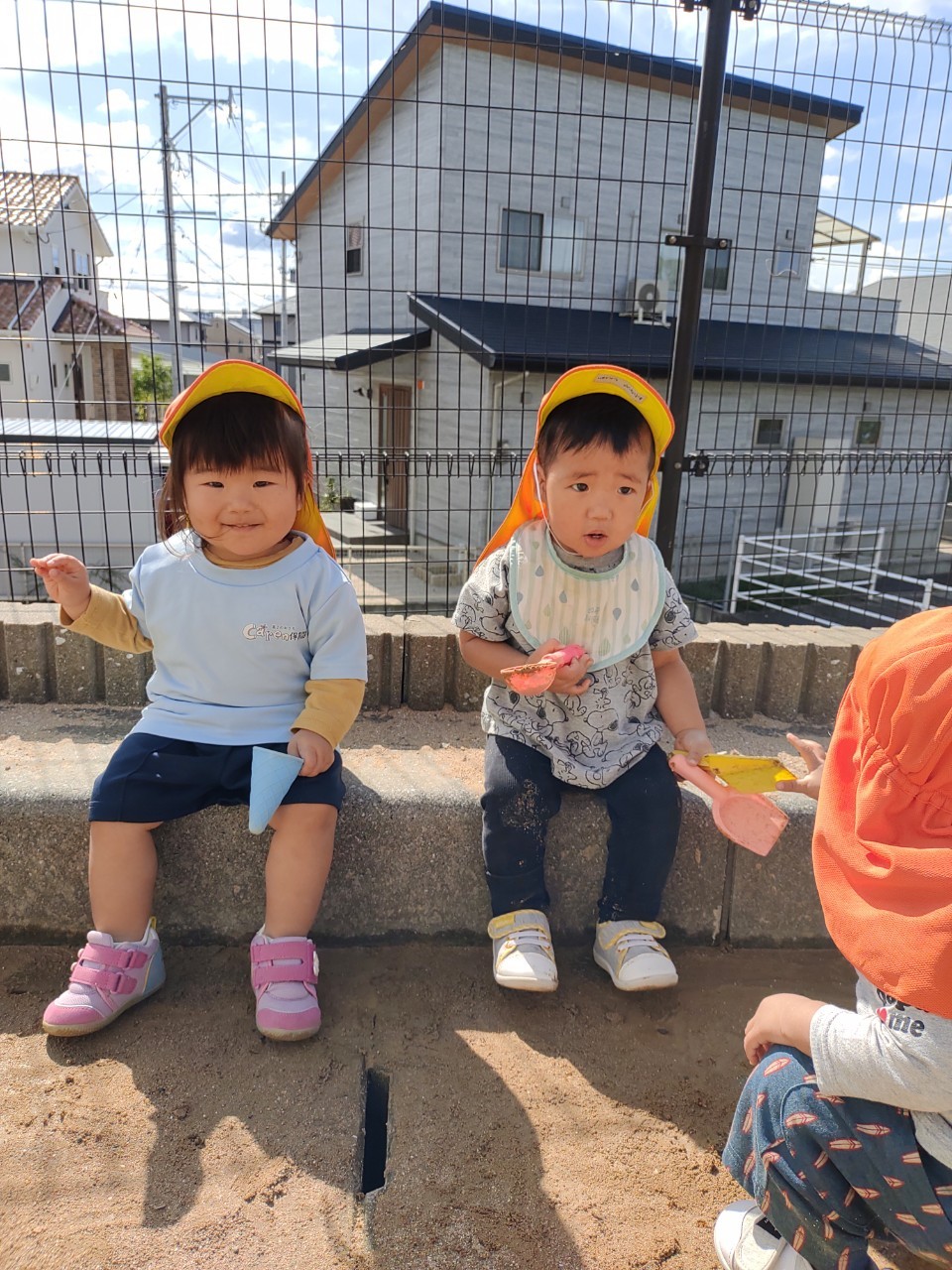 その後は園庭でたくさん砂遊びをして楽しみました🎃(うさぎ、こあら、きりんぐみ)時計の読み方を教わりました⏰