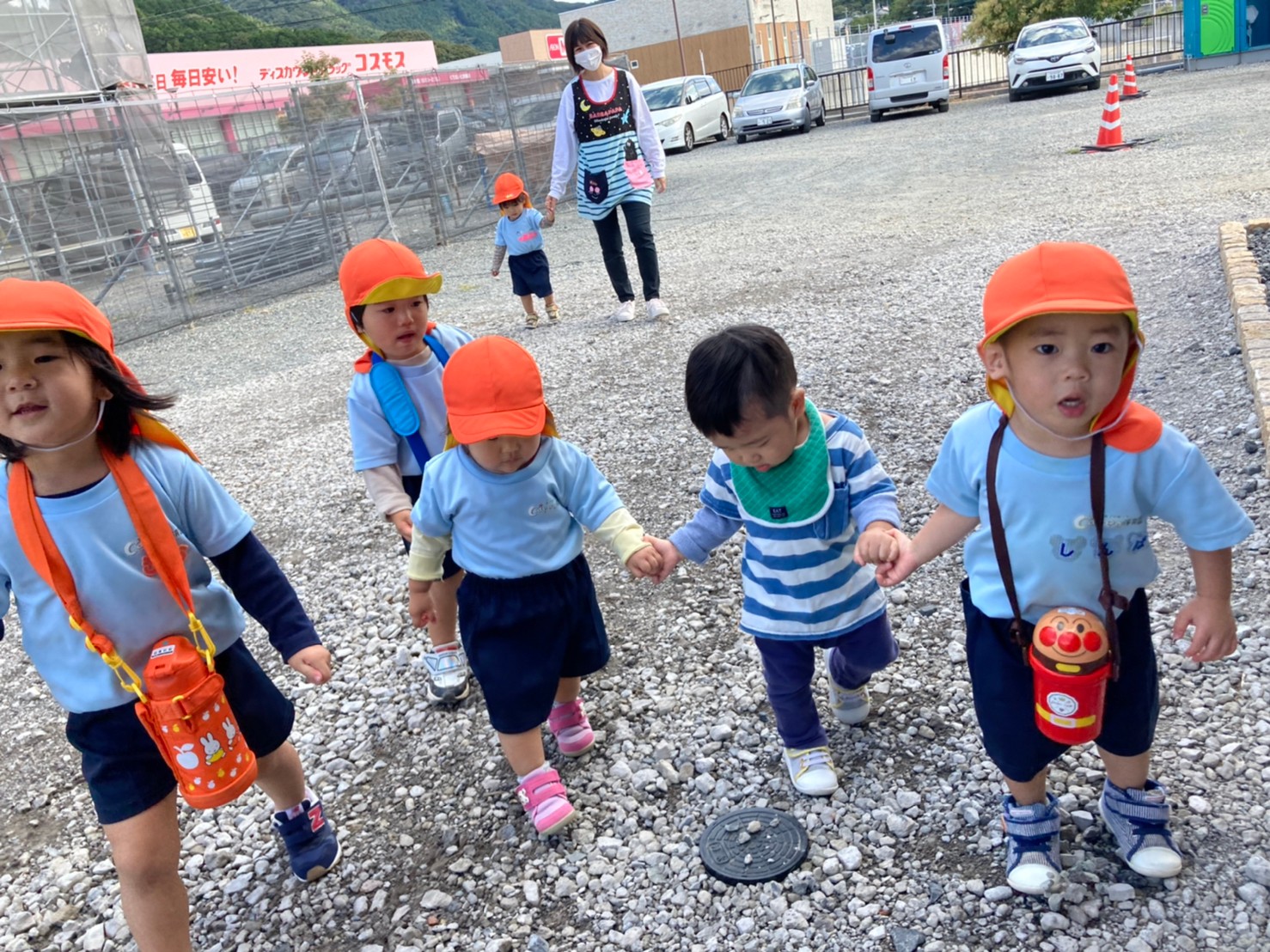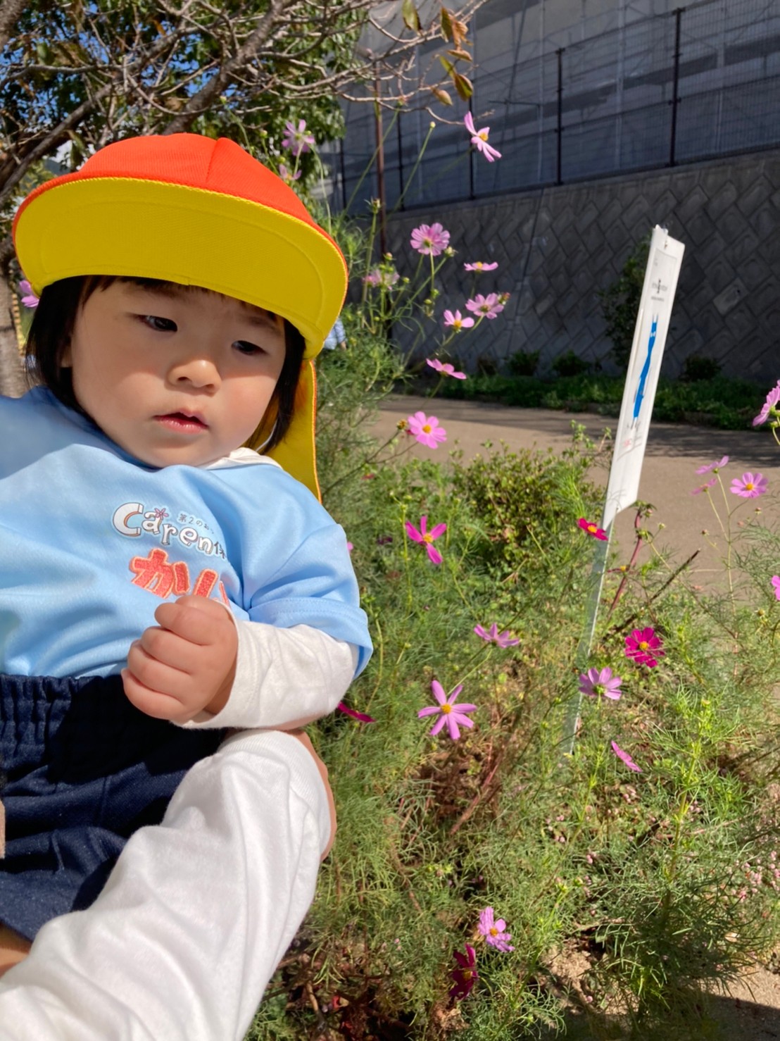 川のお魚をみたり、鐘を鳴らしたり、コスモスのお花を触ってみたりとお外の景色を楽しむことができました。 😁❤️