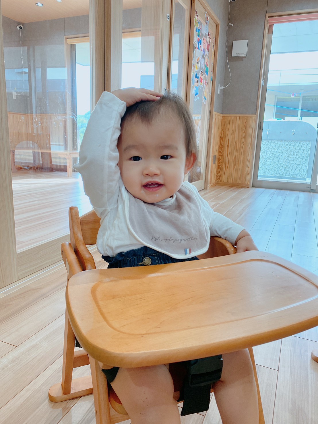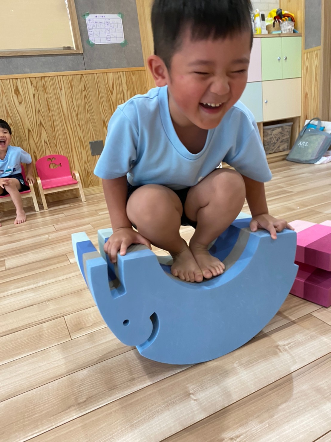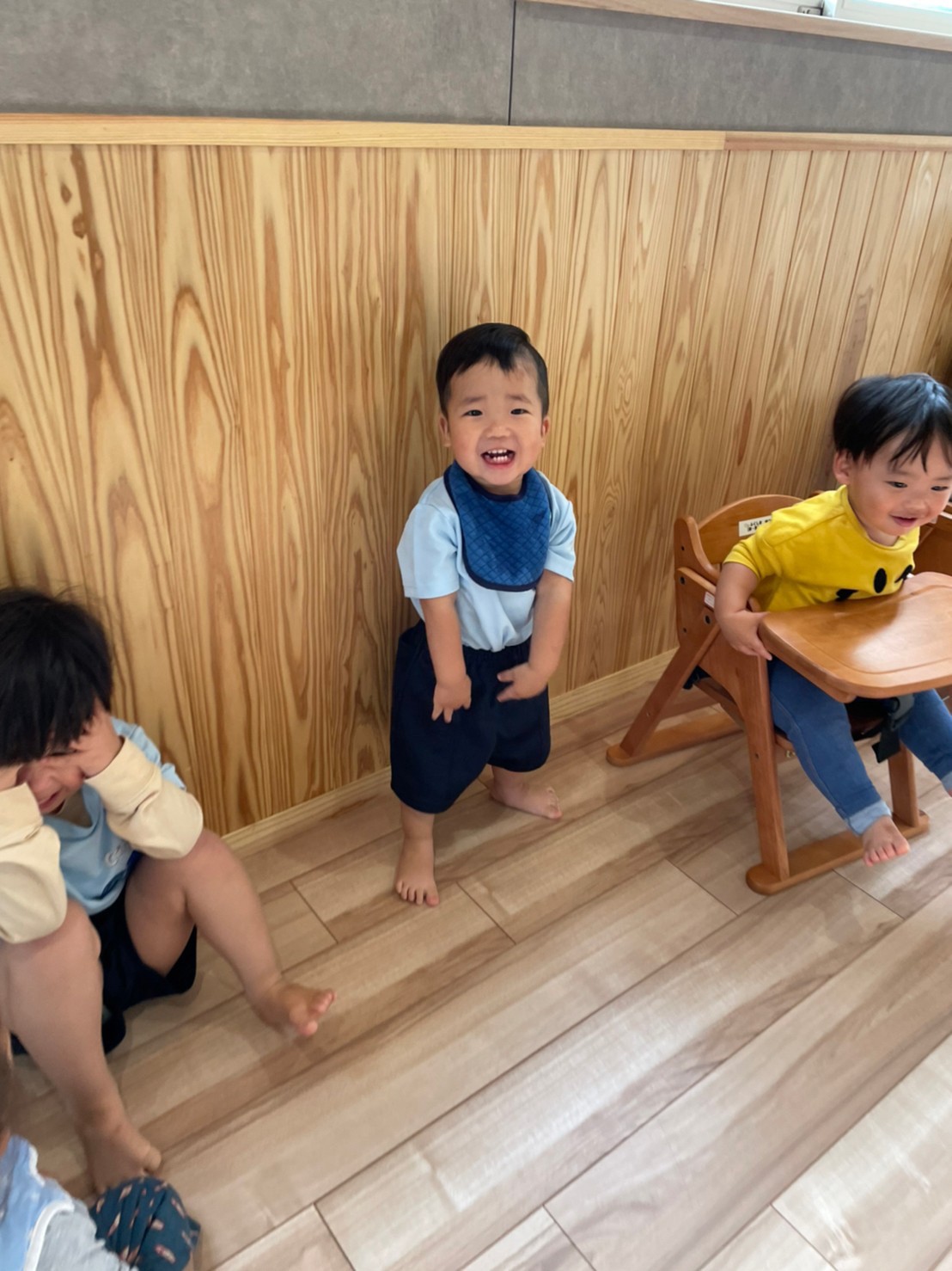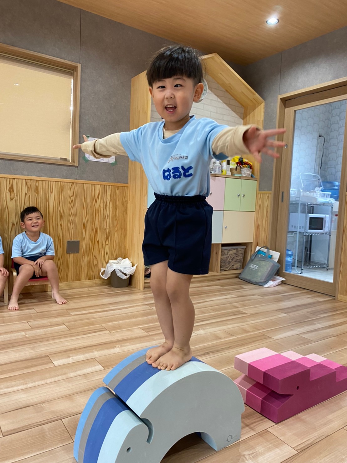 今日は室内でダンボール電車に乗って遊んだり、だるまさんの大きな絵本の読み聞かせをして、先生の真似をしながら体を揺らしてリズムに乗って聞いていました🐣(りす、ぱんだ組🐿🐼)