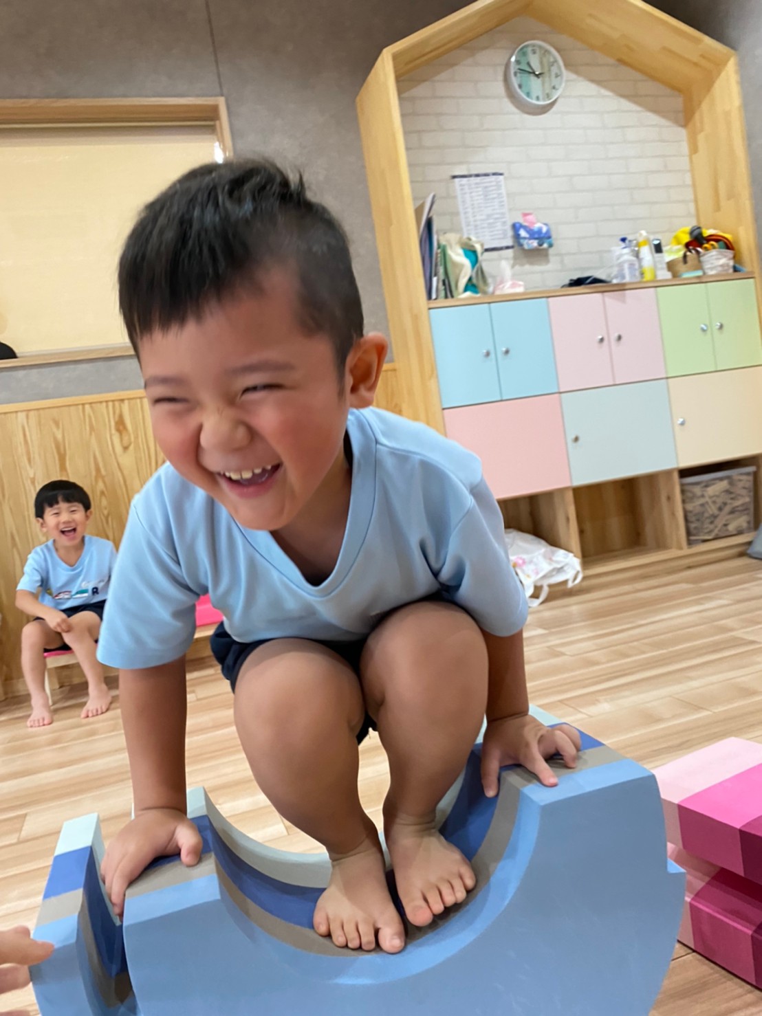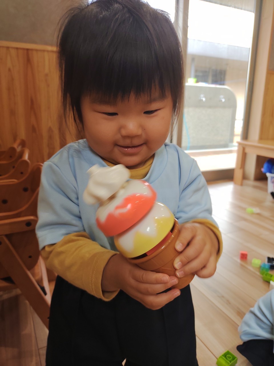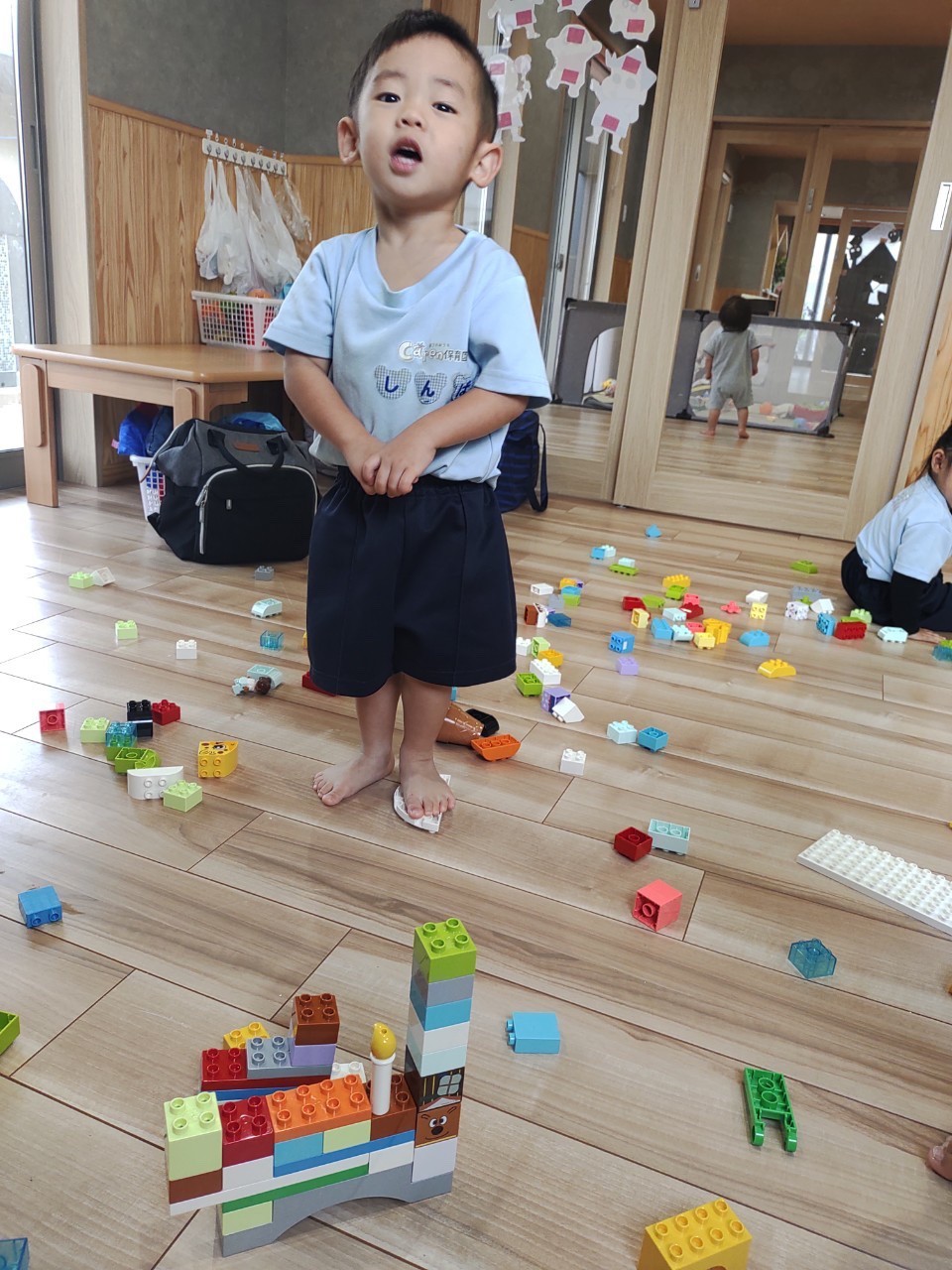 今日は室内でレゴブロックを出して遊びました🤖お友だち同士でブロックを重ねて遊んだり、鉄砲の形を作ってみたりと全体を見守りながら楽しく活動する事ができました。その後はピアノに合わせて動物の動きを真似する遊びを行い、保育者と一緒に沢山身体を動かして遊びました。💛(うさぎ、こあら、きりん組🐰🐨🦒)