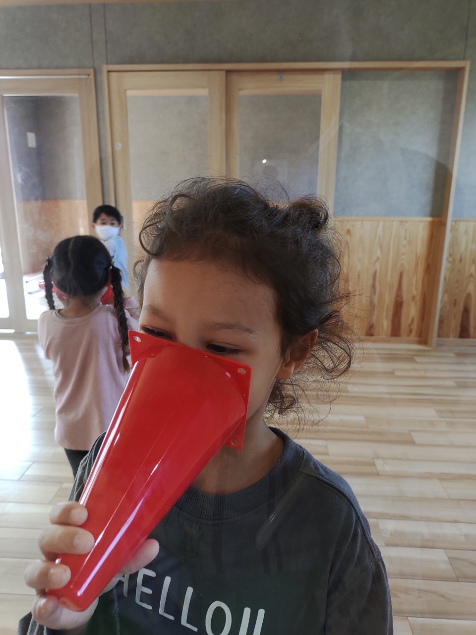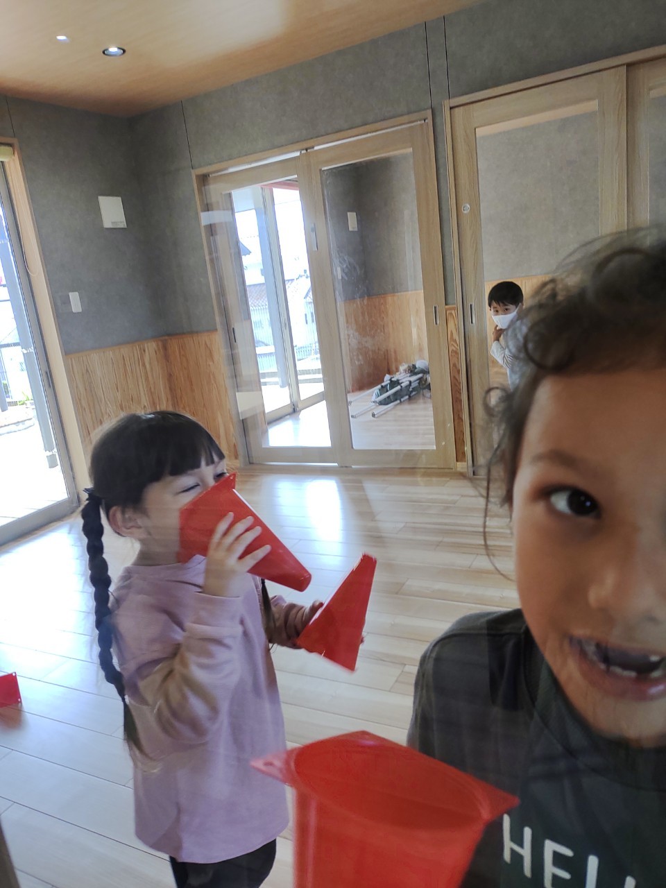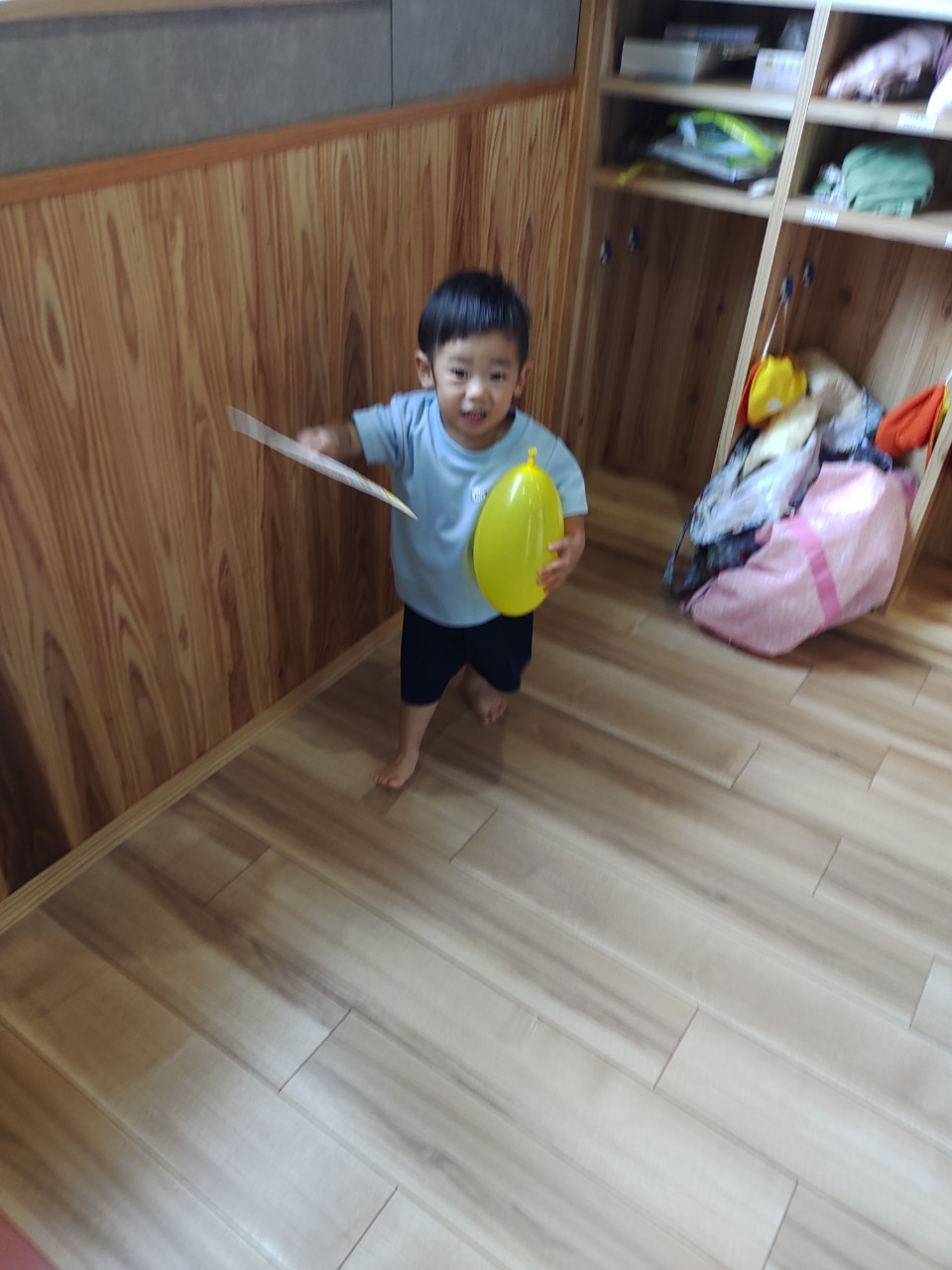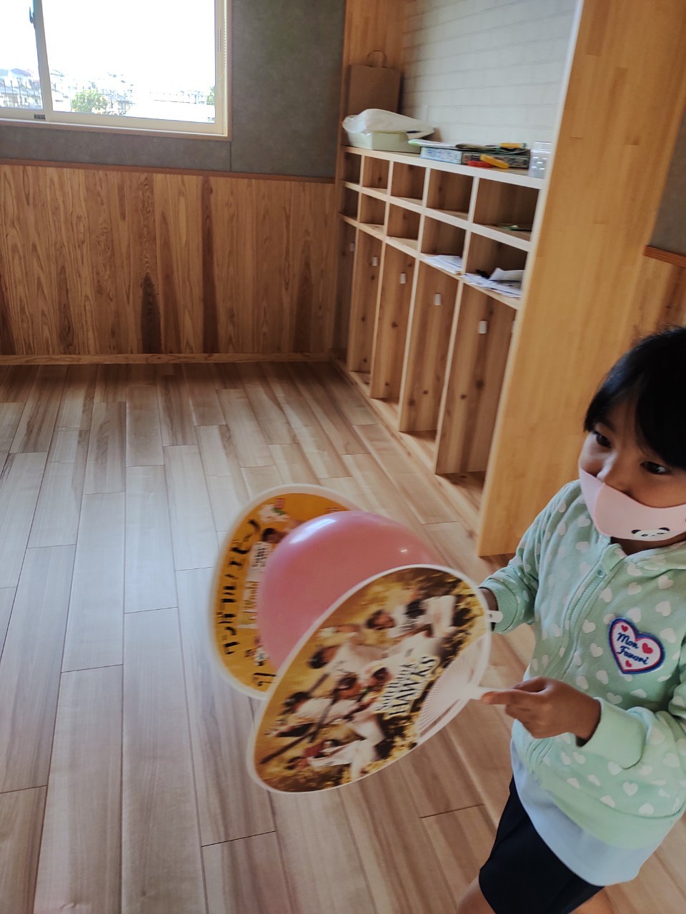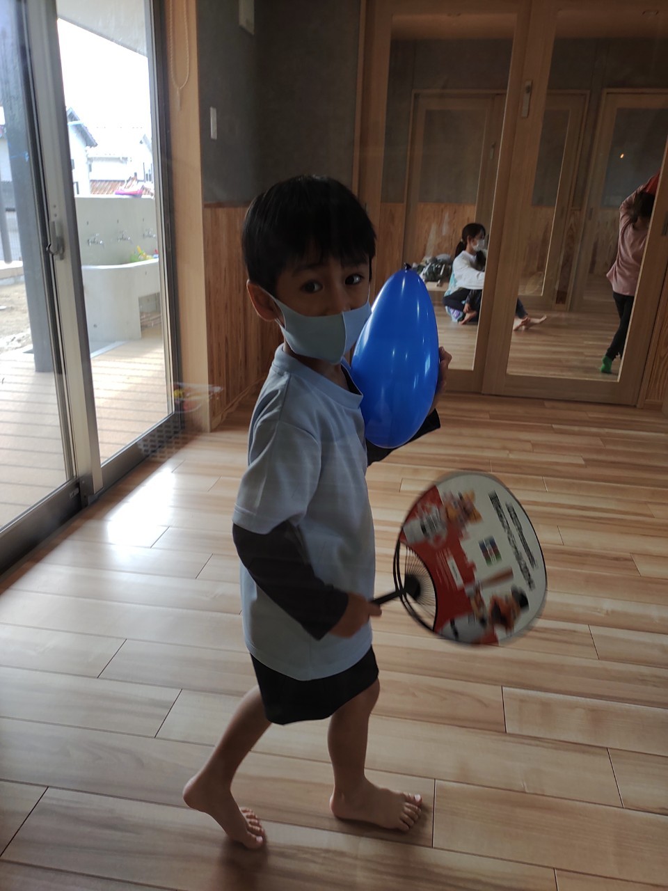 今日は新聞紙やうちわを使って風船遊びをしました。新聞紙に載せて落とさないように運んだり、うちわに挟んで運んだり、最後は一人一人うちわであおいで飛ばしたりバレーをして遊びました。その後少しだけ外遊びをしました。💛💛