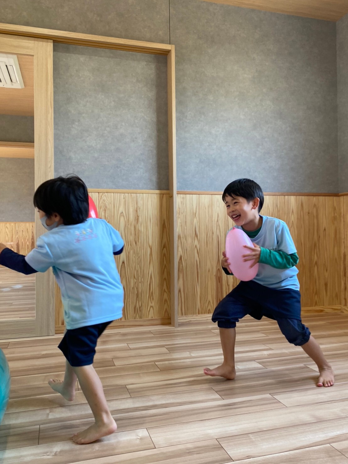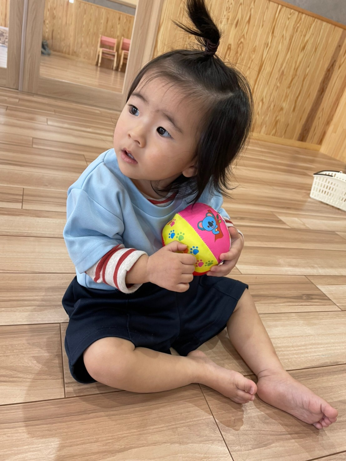 今日は広い保育室に移動してボールやボギーカーで遊びました🥎