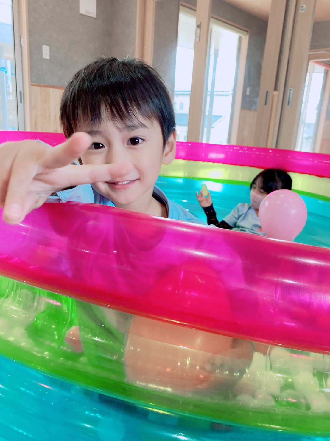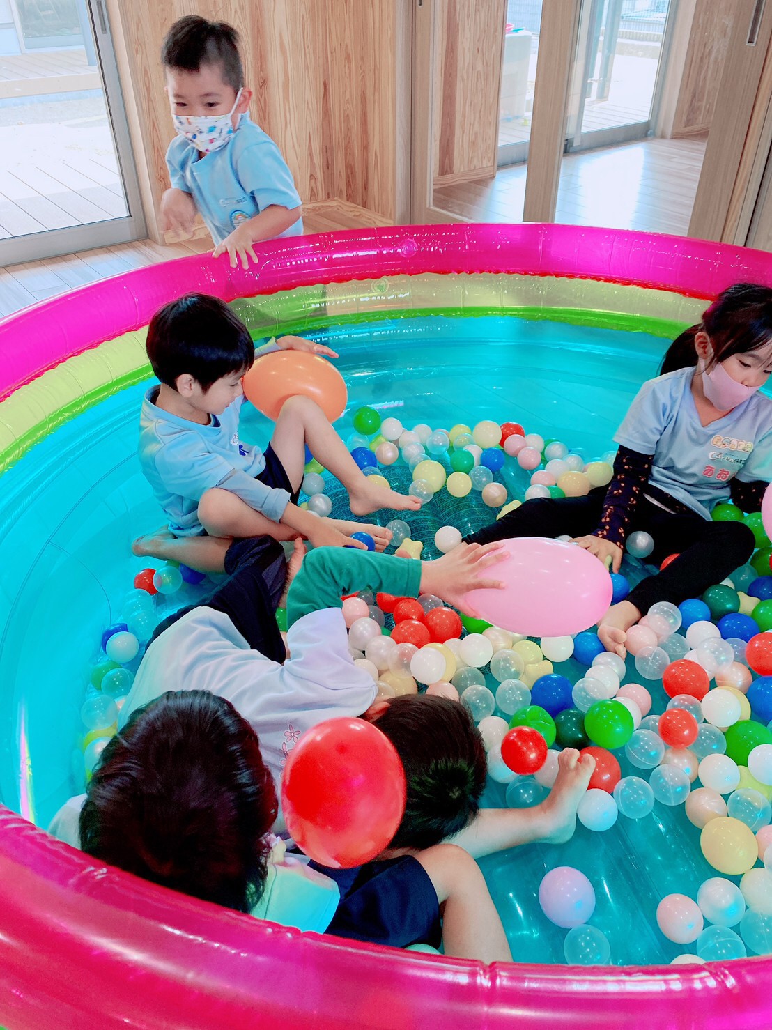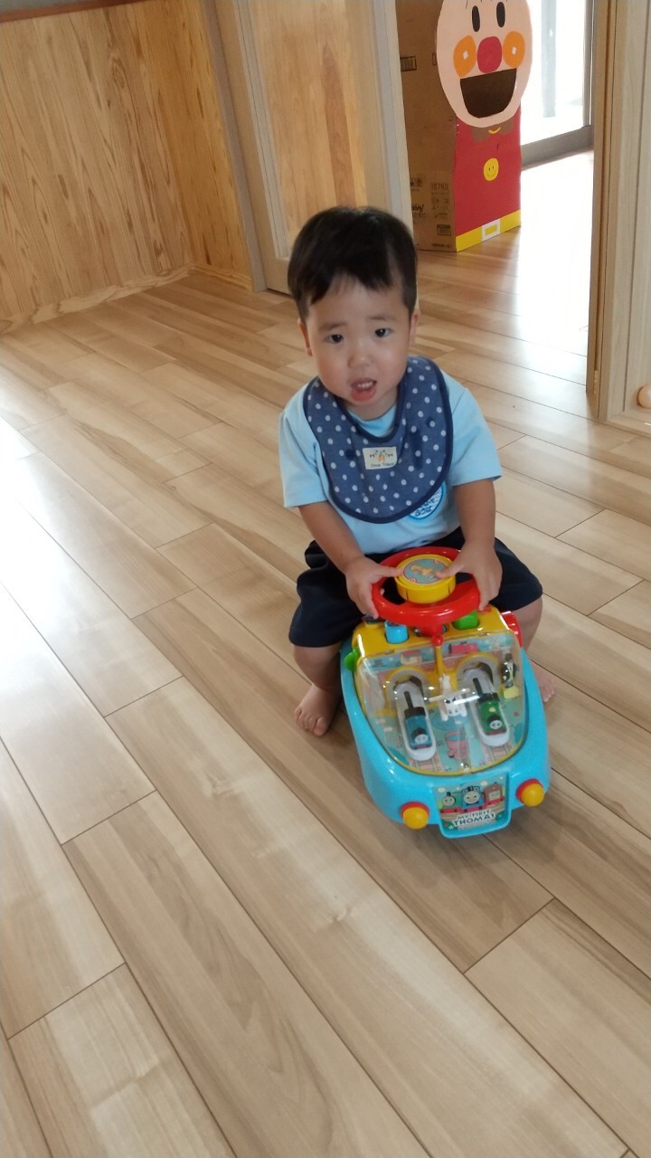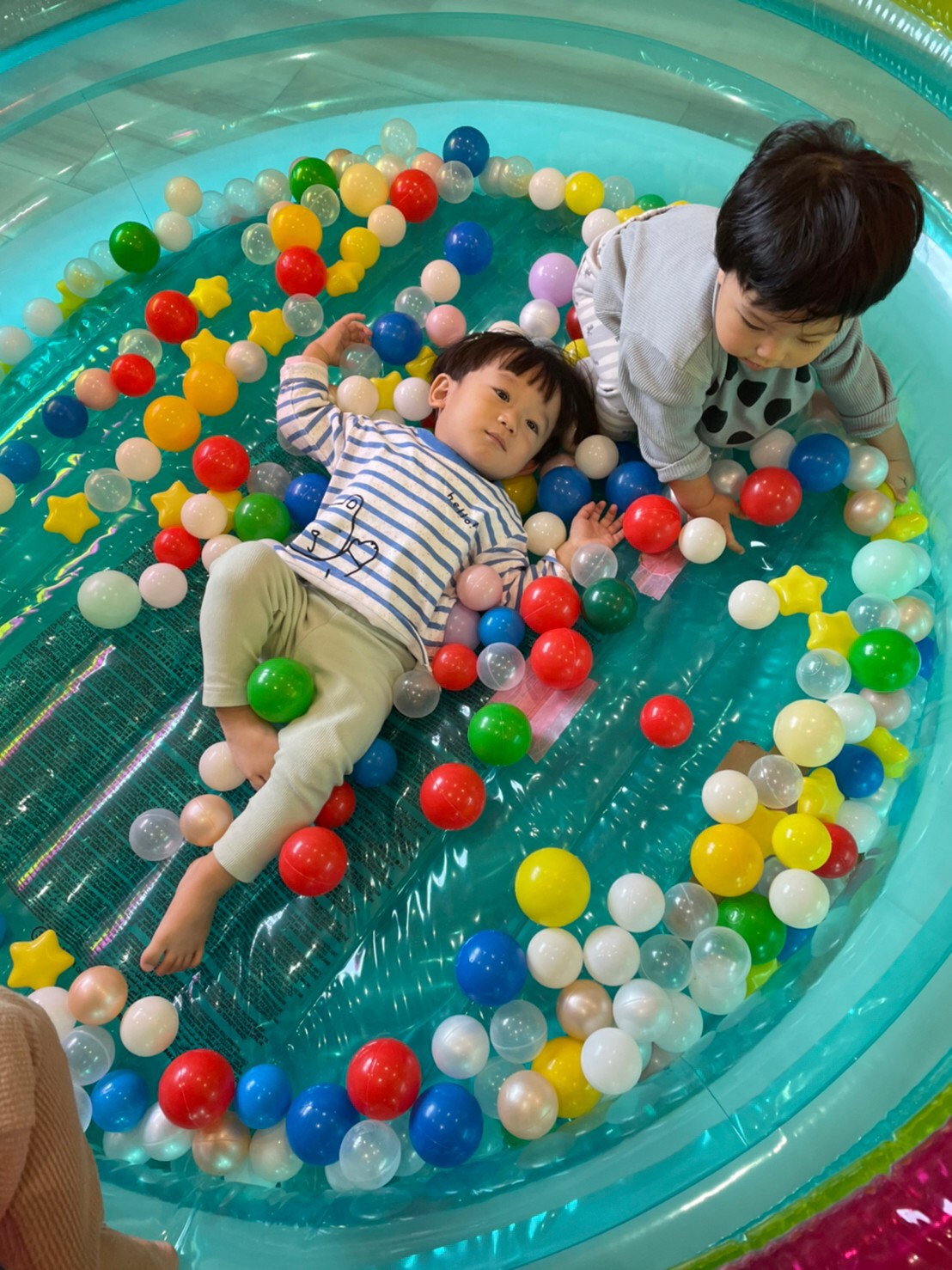 ボールをアンパンマンボックスに入れたり、ボールプールの中で活発に体を動かして楽しそうでした。ボギーカーや手押し車も喜んで遊び、広いスペースで1人ひとり楽しんでいました😆