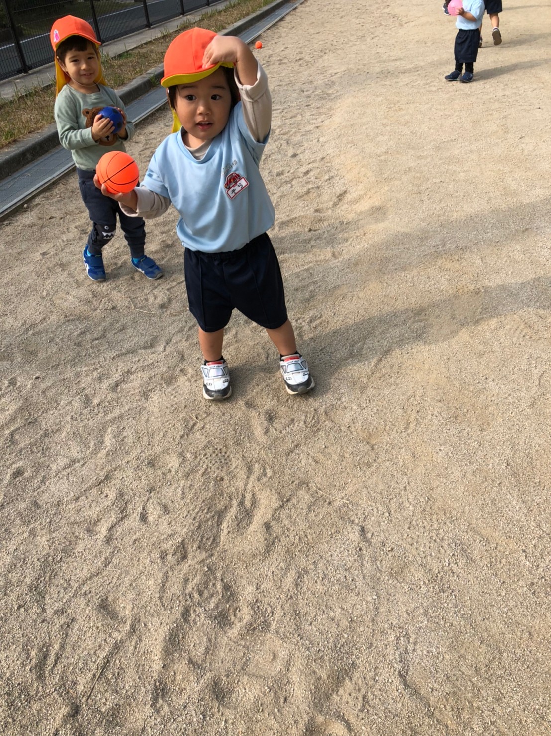 (りす、ぱんだ組)今日はボールを持って広場に行きました🥎
